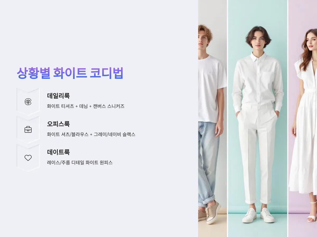 상황별 화이트 코디법: 데일리룩부터 오피스룩까지