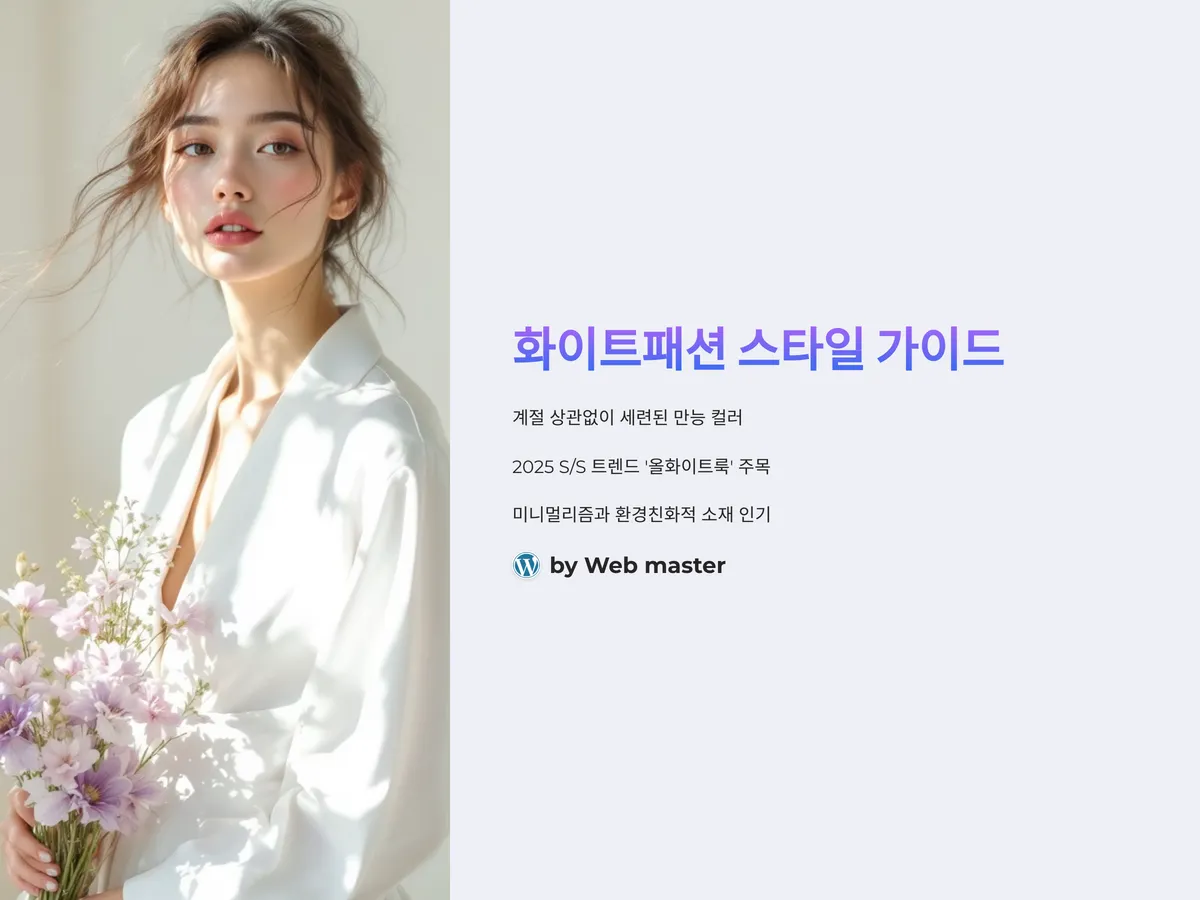 화이트패션은 계절에 구애받지 않고 언제든 세련됨을 뽐낼 수 있는 만능 컬러 스타일입니다. 특히 최근 2025년 S/S 시즌 트렌드에서는 '올화이트룩'이 다시 주목을 받으며, 하이패션부터 스트리트까지 폭넓게 활용되고 있습니다. 미니멀리즘 열풍과 함께 환경친화적인 소재의 패션이 떠오르며, 리넨, 오가닉 코튼 등의 천연소재 화이트 아이템들이 각광받고 있습니다. 화이트는 피부톤을 밝게 해주고, 전체적인 코디를 깔끔하고 단정하게 연출할 수 있어 데일리룩은 물론, 격식있는 자리에서도 활용도가 높습니다.