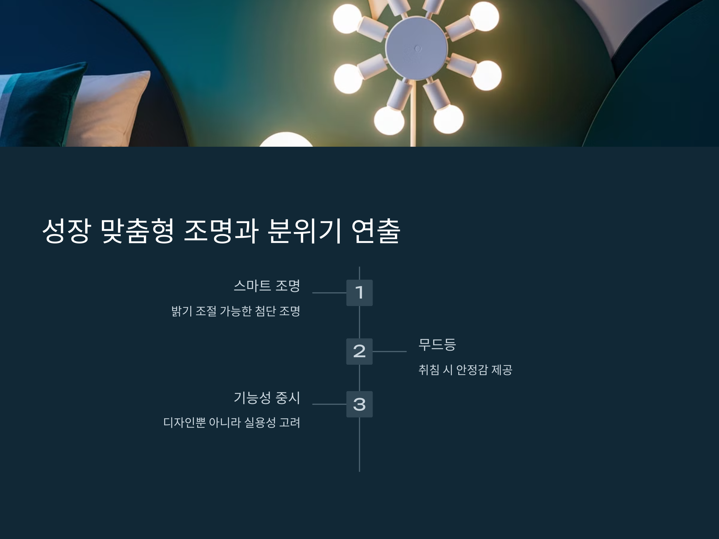 조명 하나로 키즈룸의 분위기를 크게 바꿀 수 있습니다. 최근에는 밝기 조절이 가능한 스마트 조명이나 무드등이 인기를 끌고 있으며, 아이의 취침 습관에 맞춰 조도를 조절할 수 있는 제품을 활용하면 더욱 실용적입니다. 특히, 밤에 무서움을 느끼는 아이를 위한 은은한 조명은 안정감을 주고 숙면에 도움을 줍니다. 디자인도 중요하지만 기능성을 고려해 선택하는 것이 포인트입니다.