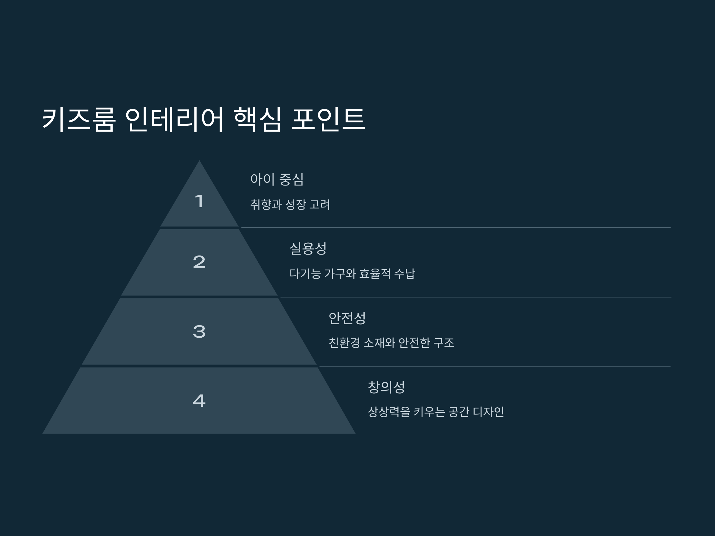 아이 방 인테리어는 단순히 귀여운 소품을 채워넣는 것이 아니라 아이의 상상력과 창의력을 키우고, 안전하면서도 실용성을 갖춘 공간을 만드는 것이 핵심입니다. 최근에는 트렌드에 맞춰 감성적이면서도 친환경적인 키즈룸 인테리어가 각광받고 있으며, 특히 아이의 연령대와 취향에 맞는 맞춤형 아이디어가 인기를 끌고 있습니다. 2024년에는 친환경 자재를 활용하거나 미니멀한 디자인과 컬러 포인트로 분위기를 더하는 경향이 뚜렷해졌습니다. 앞으로는 성장에 맞춘 모듈형 가구와 다기능 아이템이 더 주목받을 것으로 예상됩니다. 이 글에서는 아이도 좋아하고 부모도 만족할 수 있는 실용적이고 감각적인 키즈룸 인테리어 아이디어를 가득 담았으니, 끝까지 참고하셔서 우리 집에 딱 맞는 공간을 완성해보세요.