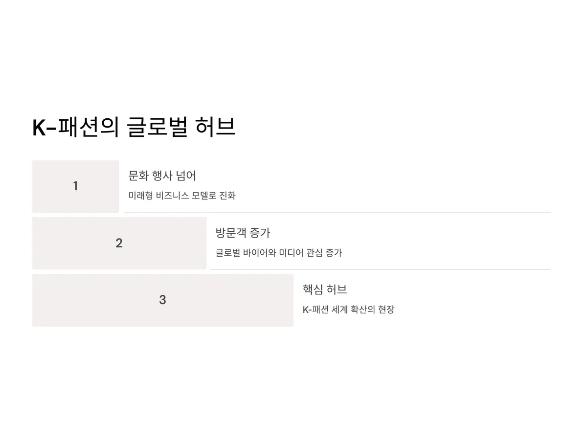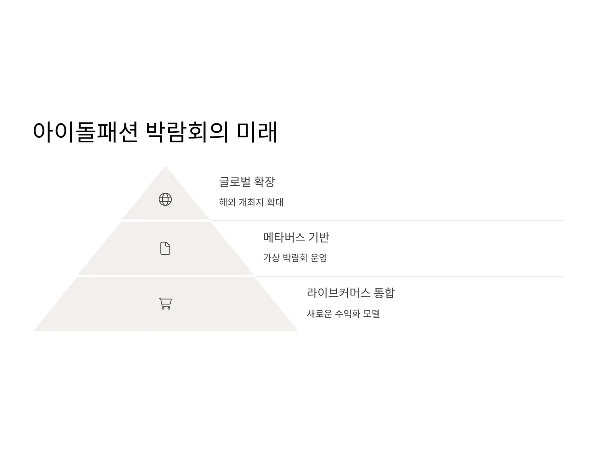 앞으로는 해외 개최지 확대, 메타버스 기반 박람회 운영, 라이브커머스 통합 플랫폼 구축 등 다양한 확장 전략이 기대되고 있습니다. 이 박람회에 주목해야 하는 이유는, K-패션이 세계로 확산되는 '현장'이자, 아이돌과 팬덤이 만들어내는 콘텐츠 파워를 가장 잘 체감할 수 있는 핵심 허브이기 때문입니다.
