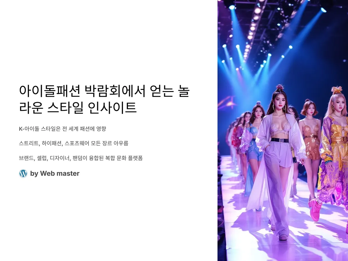 K-아이돌의 스타일은 더 이상 무대 위의 이야기만이 아닙니다. 전 세계적인 한류 확산과 함께 아이돌 패션은 스트리트, 하이패션, 스포츠웨어까지 모든 패션 장르에 영향을 미치고 있으며, 그 흐름의 중심에는 바로 아이돌패션 박람회가 있습니다. 이 박람회는 단순한 트렌드 쇼케이스를 넘어, 브랜드와 셀럽, 디자이너, 그리고 팬덤이 모두 융합되는 복합 문화 플랫폼으로 자리잡고 있습니다.
