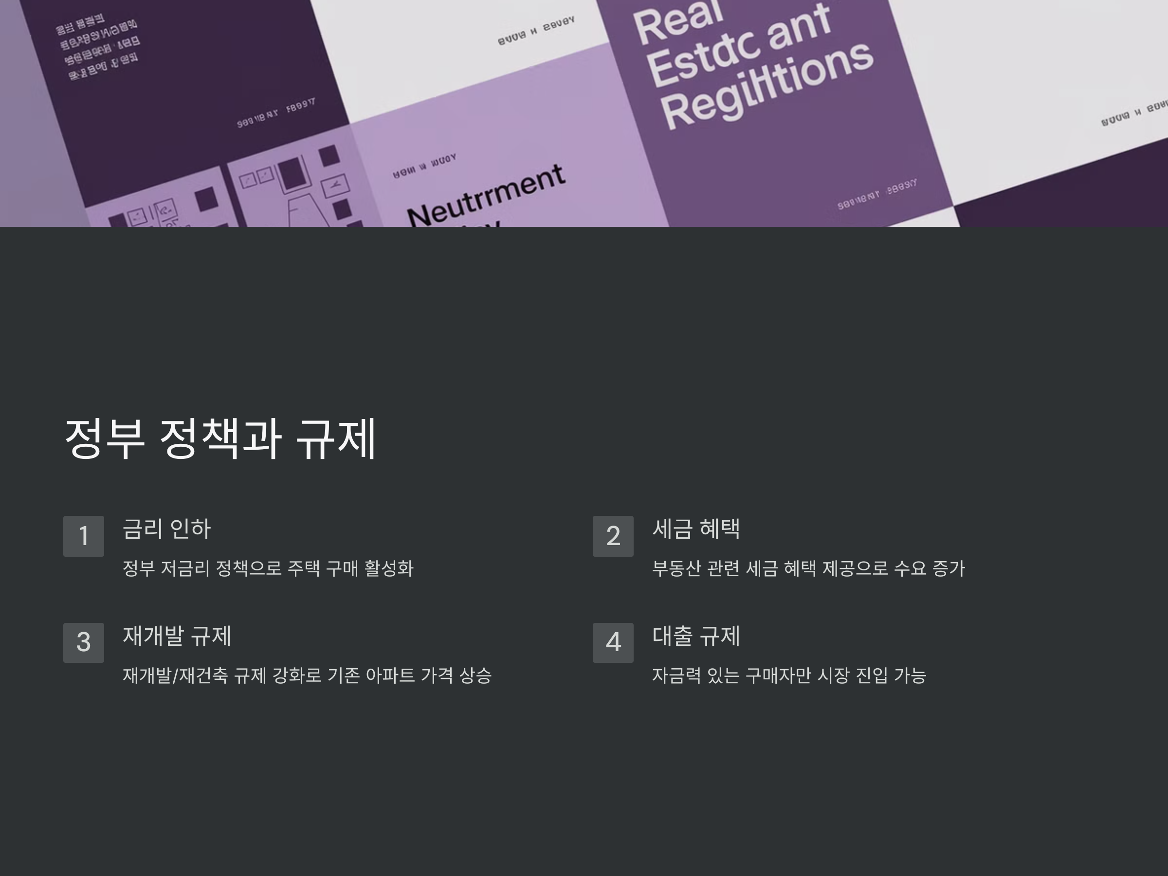 아파트 가격 상승의 가장 중요한 요인 중 하나는 바로 정부의 정책입니다. 정부는 주택 시장을 규제하거나 지원함으로써 시장 가격에 큰 영향을 미칩니다. 예를 들어, 정부가 금리를 낮추거나 부동산 관련 세금 혜택을 제공하면, 많은 사람들이 주택 구매를 활성화시키게 되며 이는 자연스럽게 가격 상승을 초래할 수 있습니다.