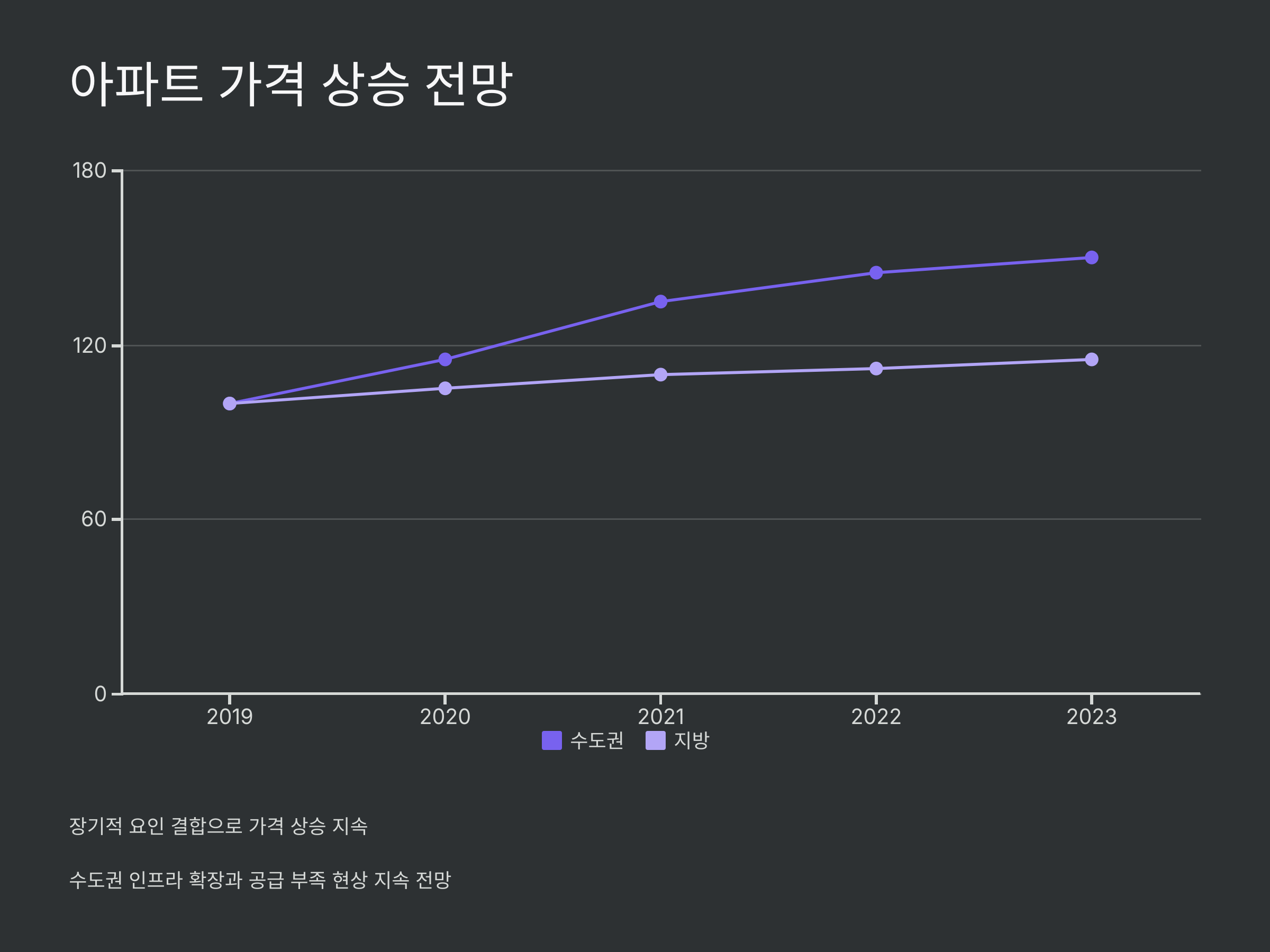 아파트 가격 상승은 단기적인 요인뿐만 아니라 장기적인 요소들이 결합하여 이루어집니다. 정부의 정책, 금리, 공급 부족, 외국인 투자 등 여러 가지 복합적인 요인들이 맞물려 있기 때문에, 가격 상승이 계속될 것이라고 예측하는 전문가들도 많습니다. 특히, 수도권과 같은 대도시 지역에서는 앞으로도 인프라 확장과 공급 부족 현상이 계속될 가능성이 높습니다.