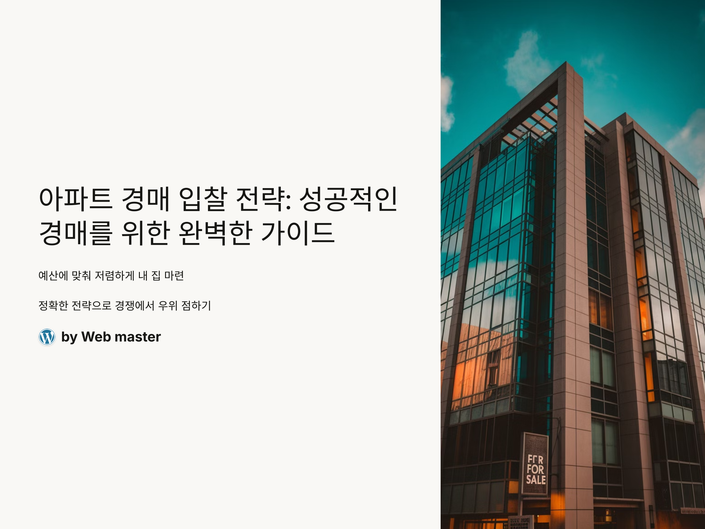아파트 경매는 신중하고 전략적인 접근이 필요합니다. 시장 분석, 입찰 시기, 금액 설정 등 다양한 전략을 종합적으로 고려해야 성공적인 경매를 경험할 수 있습니다. 경매에서 승리하려면 철저한 준비와 계획이 필요하며, 법적 문제와 임차인 문제도 신중히 파악해야 합니다. 이러한 전략들을 잘 활용하면, 저렴한 가격에 내 집을 마련하는 기회를 얻을 수 있습니다.