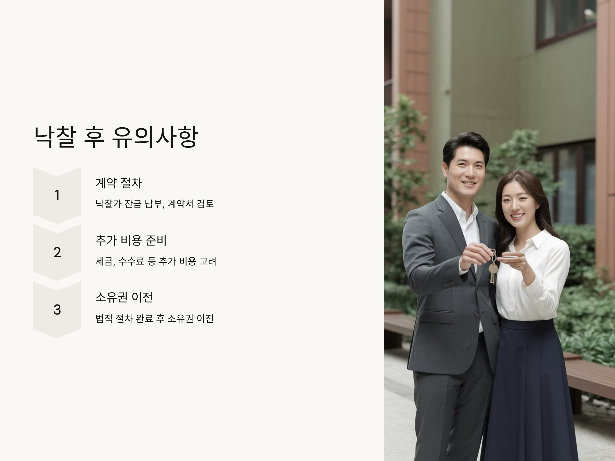 경매에서 아파트를 낙찰받은 후에는 몇 가지 유의 사항을 지켜야 합니다.