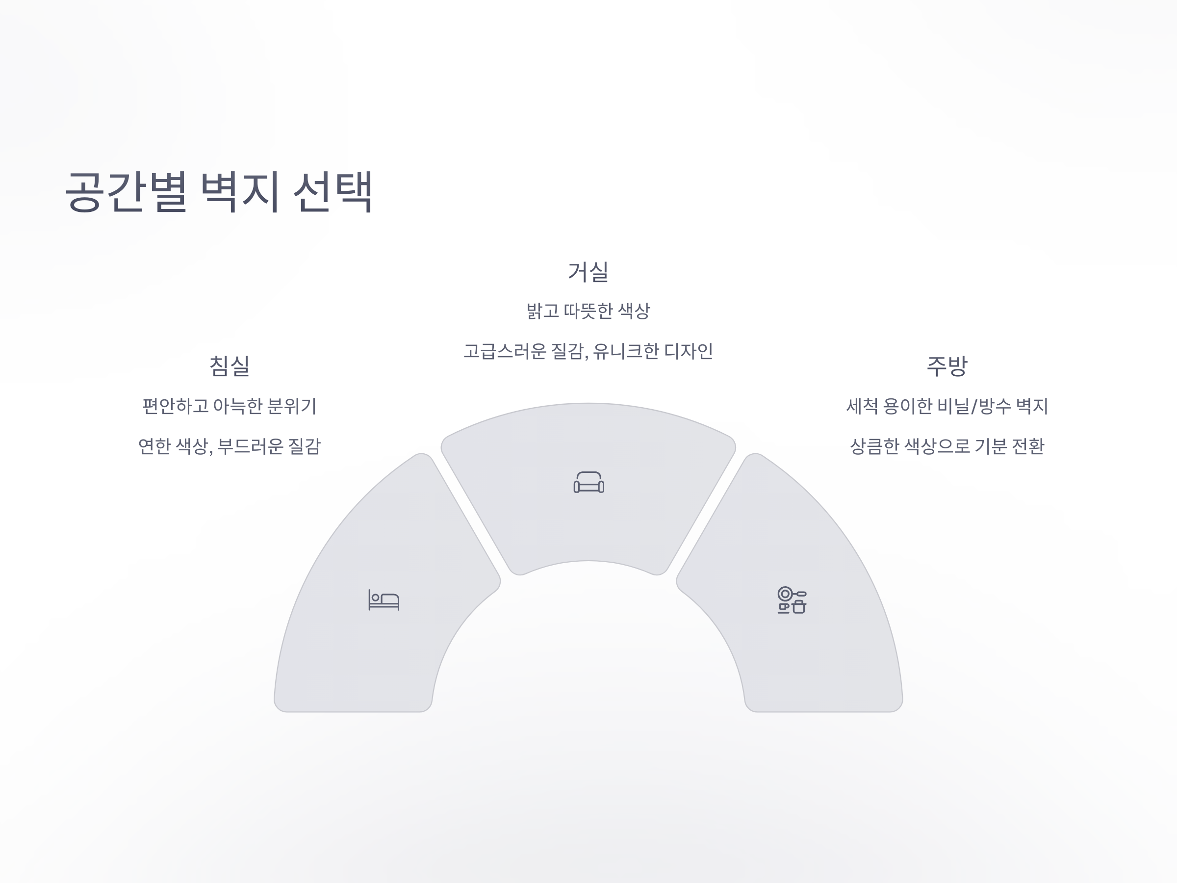 거실은 집안에서 가장 많은 시간을 보내는 공간이므로, 다양한 활동을 수용할 수 있도록 벽지 선택에 신경을 써야 합니다. 밝고 따뜻한 색상을 사용하면 거실을 더 넓어 보이게 할 수 있으며, 고급스러운 질감이나 유니크한 디자인을 활용하여 스타일리시한 느낌을 강조할 수도 있습니다.