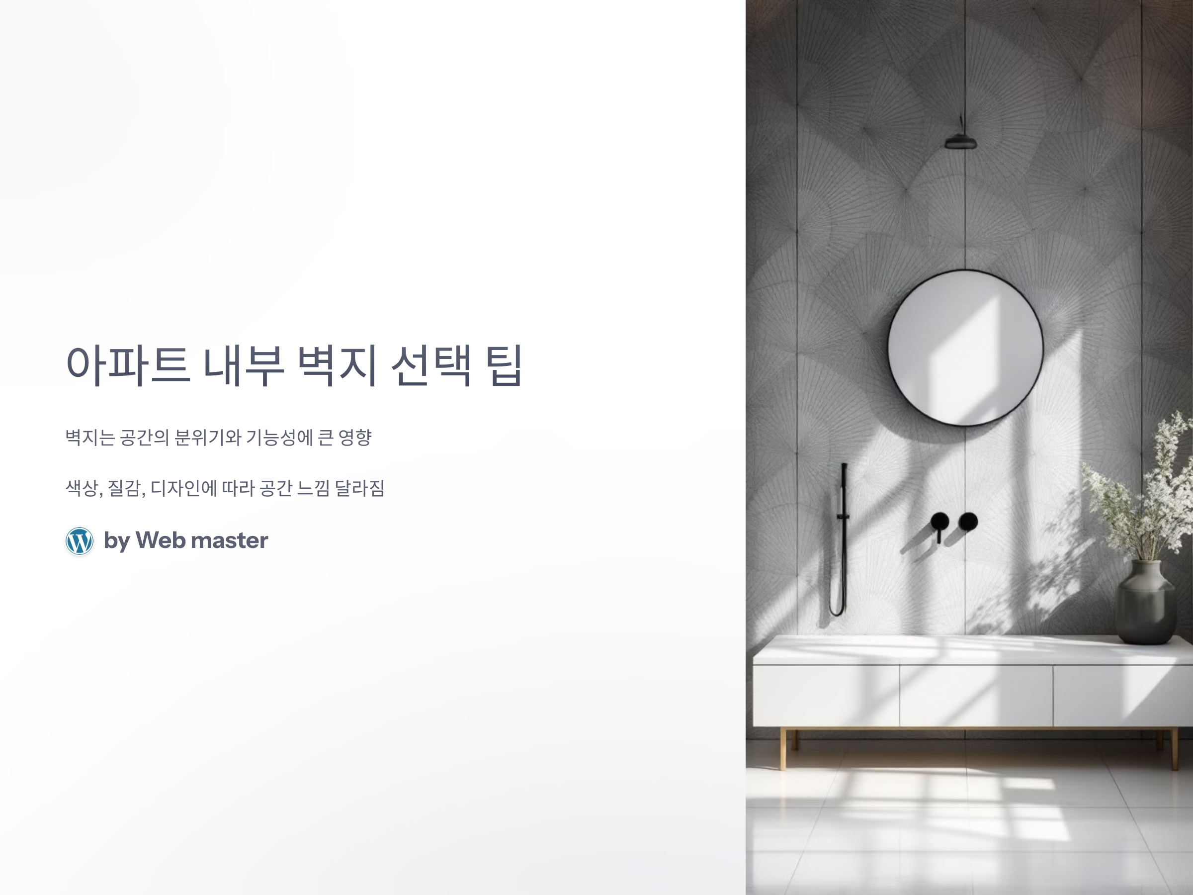 벽지를 선택할 때 가장 중요한 것은 나만의 스타일과 아파트의 용도에 맞는 벽지를 선택하는 것입니다. 다양한 디자인, 색상, 질감이 존재하는 만큼, 자신의 취향에 맞게 선택하는 것이 무엇보다 중요합니다. 무엇보다, 벽지 선택이 집안 분위기에 미치는 영향이 크므로, 이 점을 충분히 고려하여 선택해 보세요. 이렇게 벽지를 잘 선택하면, 집안의 분위기를 한층 더 개선하고, 자신만의 아늑한 공간을 만들 수 있을 것입니다.