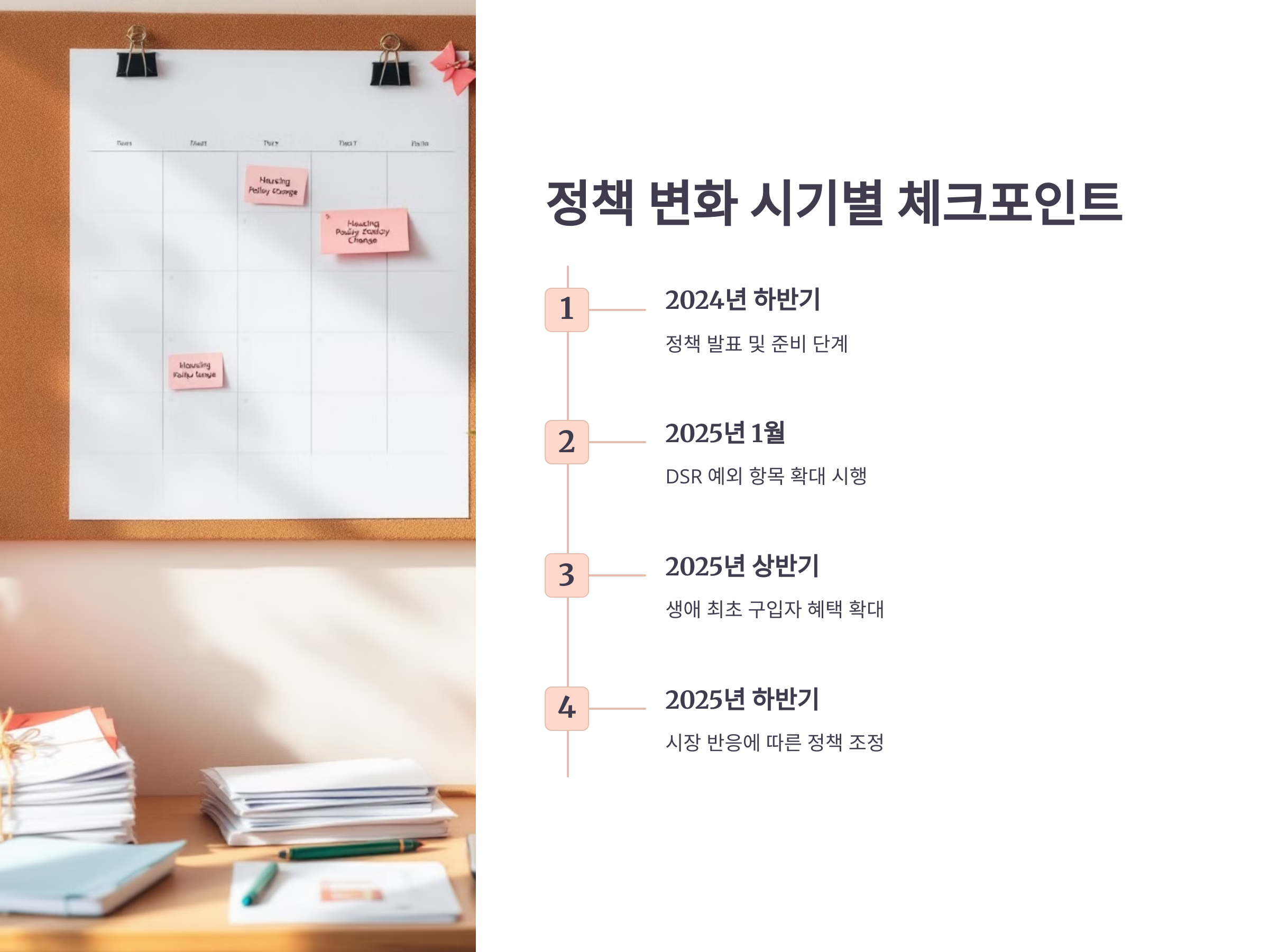 2025년 1월부터는 생애 최초 주택 구입자와 실수요자를 중심으로 한 완화 정책이 시행되면서, 특히 연 소득 7천만 원 이하 가구에 대해 대출 비율이 확대되고 있습니다. 또한 DSR 규제에서 제외되는 대출 항목이 늘어나면서 중도금 대출, 전세자금 대출 등 실수요성 대출은 더 유연하게 적용되고 있습니다. 이로 인해 자금 마련이 어려웠던 젊은 세대에게는 긍정적인 신호로 해석됩니다. 동시에 다주택자에 대한 규제는 유지되거나 일부 강화되어, 실수요 중심의 시장 흐름이 이어질 전망입니다.