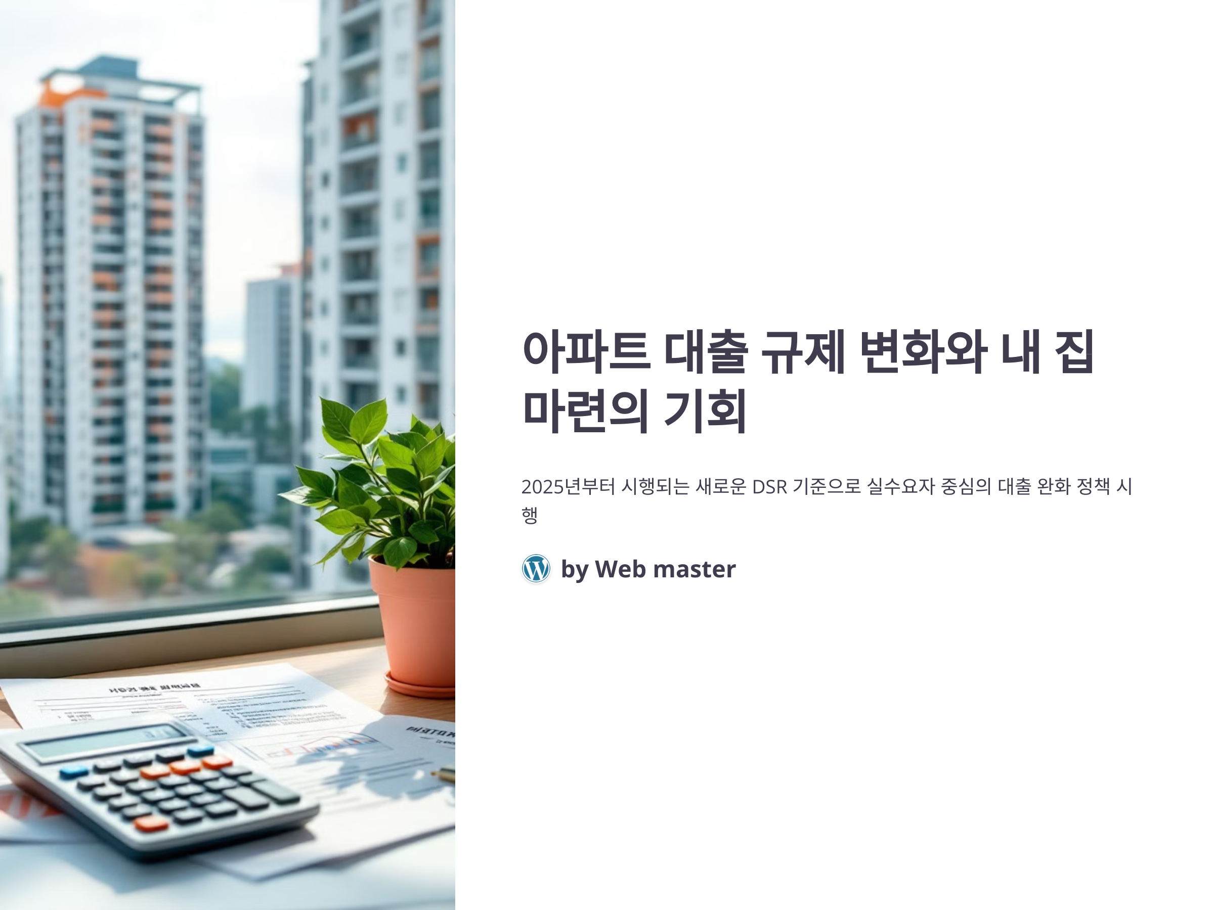 최근 정부의 부동산 정책 변화로 인해 아파트 대출 한도 규제가 대폭 수정되었습니다. 특히 2025년부터 시행되는 새로운 DSR(총부채원리금상환비율) 기준은 실수요자와 다주택자 모두에게 적잖은 영향을 미치고 있으며, 이에 따라 대출 가능 금액과 전략에도 큰 변화가 예상됩니다. 이번 포스팅에서는 아파트 대출 규제의 최신 흐름을 짚어보고, 앞으로의 부동산 시장과 대출 전략 수립에 어떤 변화가 필요한지에 대해 깊이 있게 분석해보겠습니다.