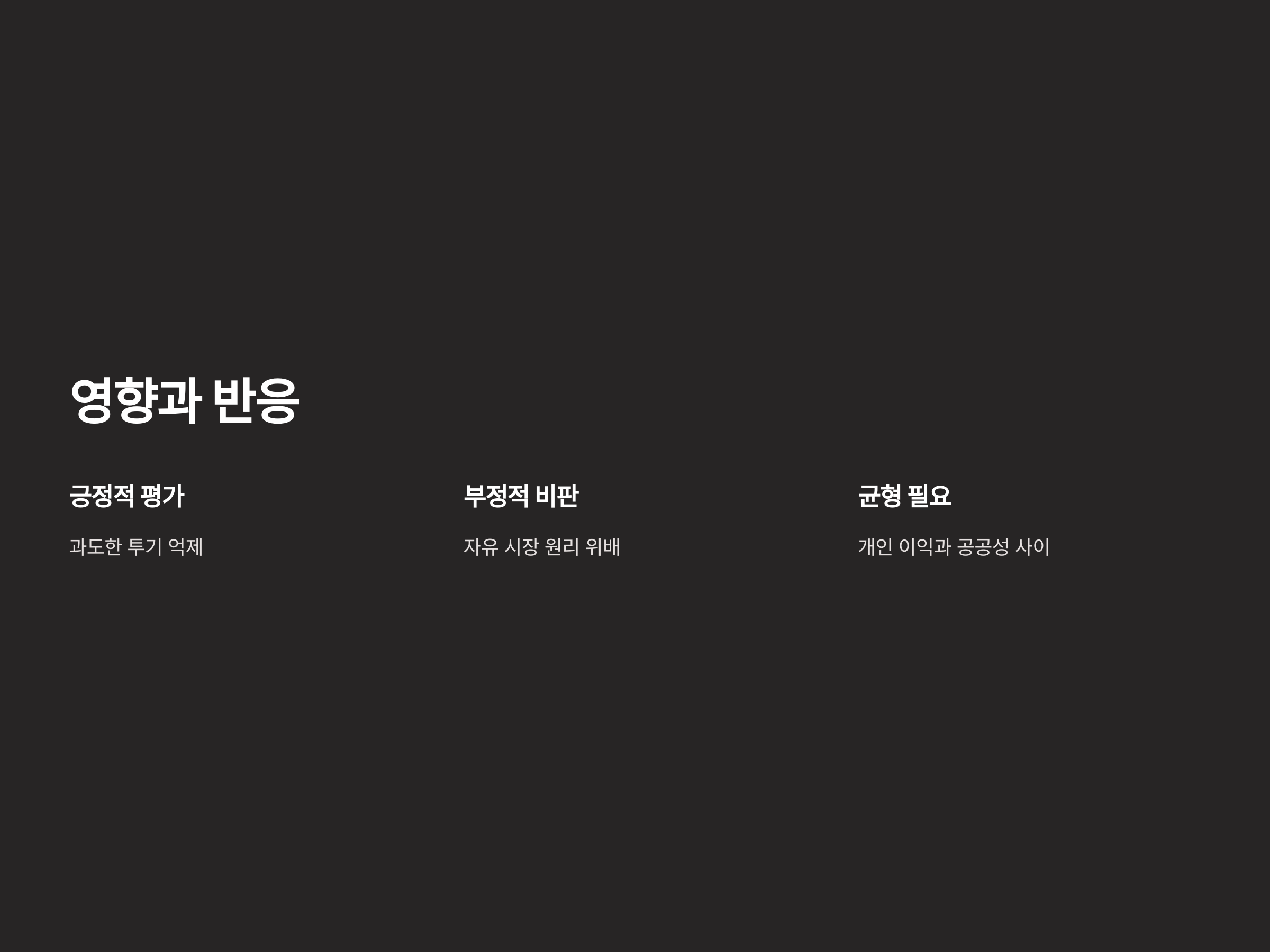 초과이익환수제에 대한 반응은 긍정적이기도 하고, 부정적이기도 합니다. 일부 전문가들은 이 제도가 부동산 시장의 과도한 투기를 억제할 수 있다고 평가하지만, 재건축을 준비하는 사람들 사이에서는 자유로운 시장 원리에 반하는 규제로 작용한다고 비판하는 목소리도 많습니다.