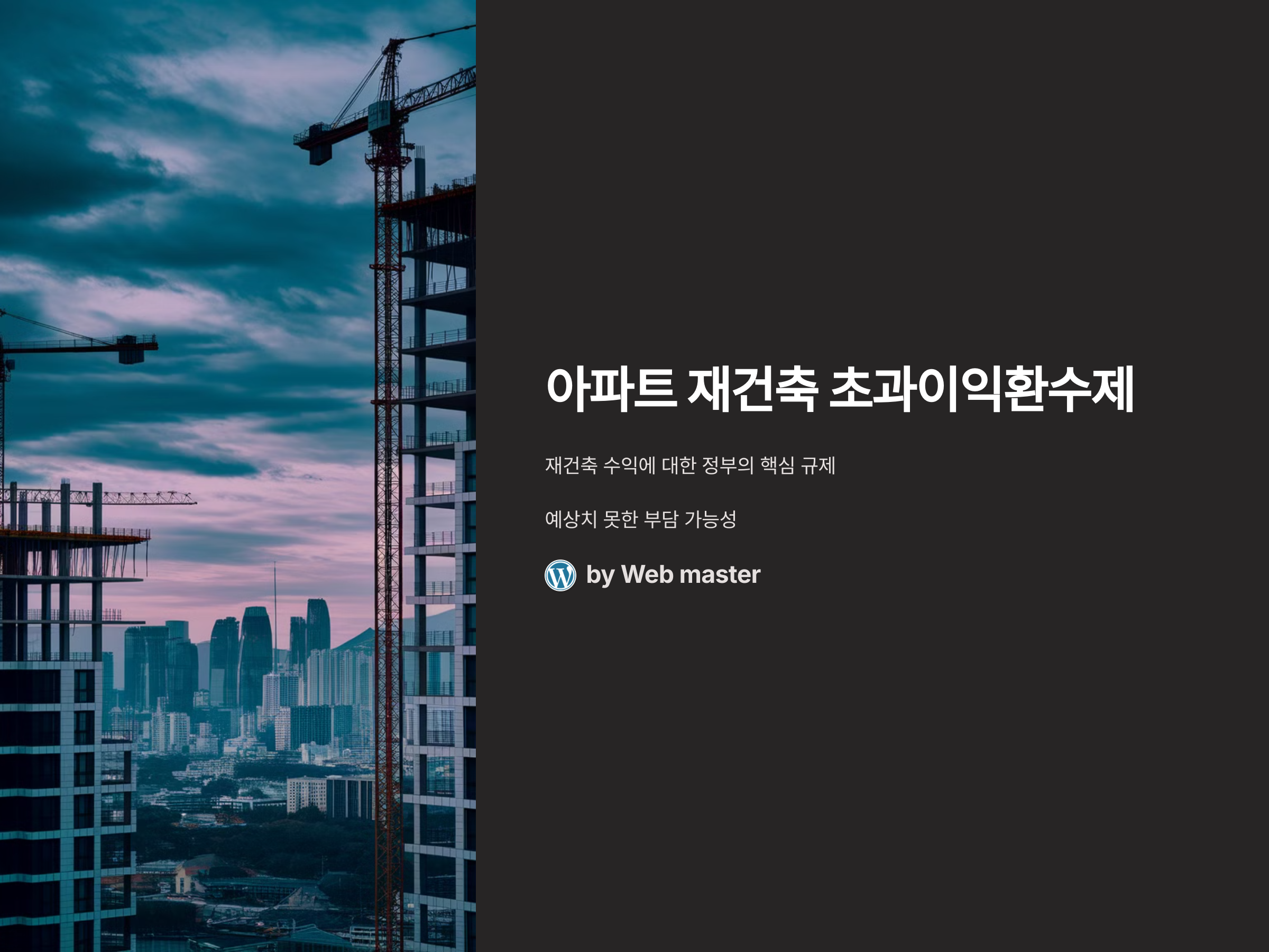아파트 재건축을 꿈꾸는 많은 사람들이 고려해야 할 중요한 법적 이슈, 바로 초과이익환수제입니다. 재건축이 진행될 때 기대할 수 있는 수익은 상당하지만, 그만큼 정부는 과도한 이익을 환수하려는 정책을 강하게 추진하고 있습니다. 아파트 재건축 초과이익환수제는 그 이익을 어떻게 계산하고, 환수하는지에 대한 핵심 규제입니다. 이를 제대로 이해하고 준비하지 않으면, 예상치 못한 부담을 떠안게 될 수 있습니다.