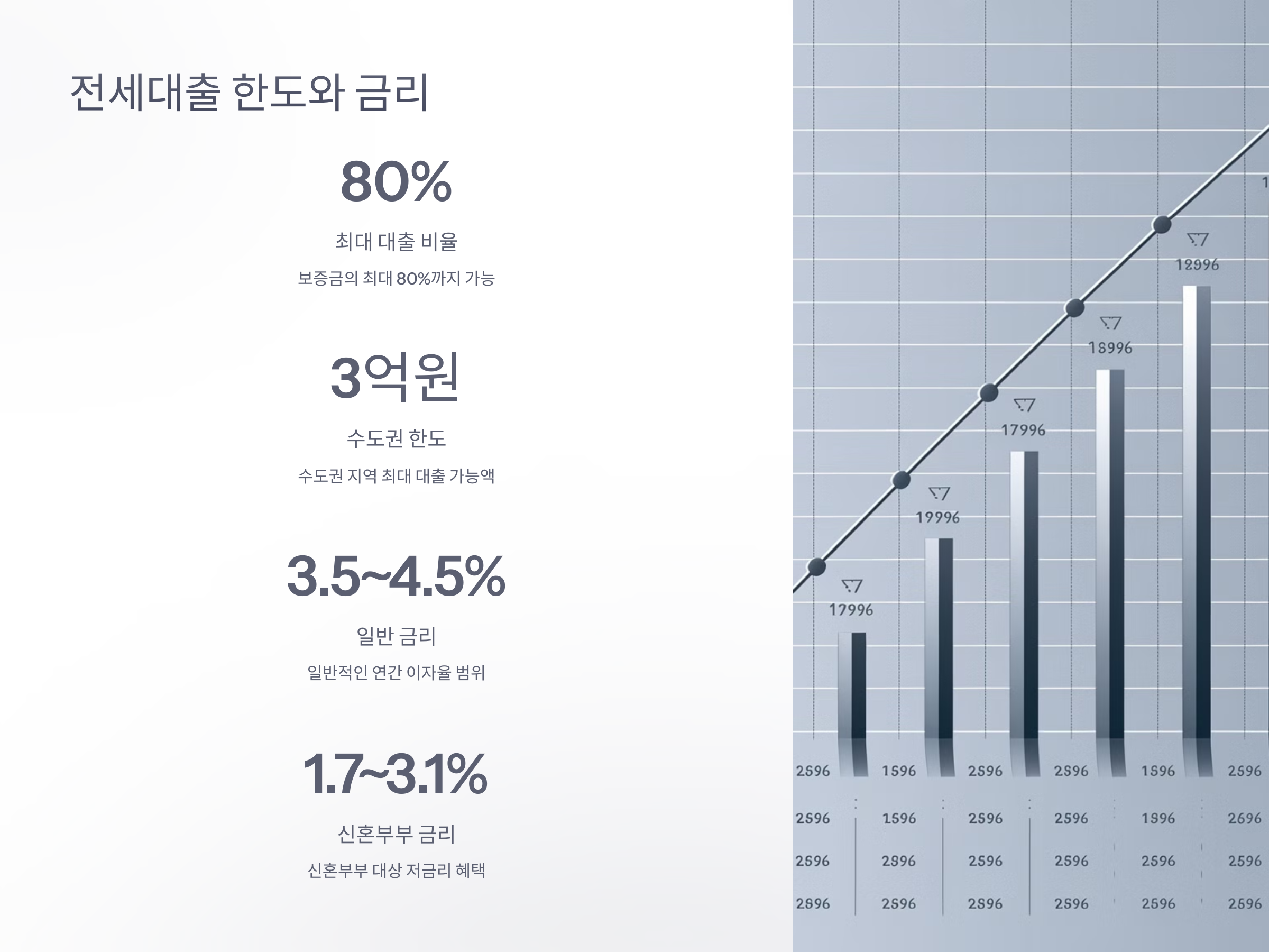 전세대출의 한도는 보증금의 최대 80%까지 가능하며, 지역에 따라 차이가 있습니다. 예를 들어, 수도권에서는 최대 3억 원, 지방에서는 최대 2억 원까지 대출이 가능합니다. 금리는 상품과 신청인의 신용도에 따라 다르며, 일반적으로 연 3.5~4.5% 수준입니다. 신혼부부의 경우 연 1.7~3.1% 수준의 저금리가 적용됩니다. citeturn0search1