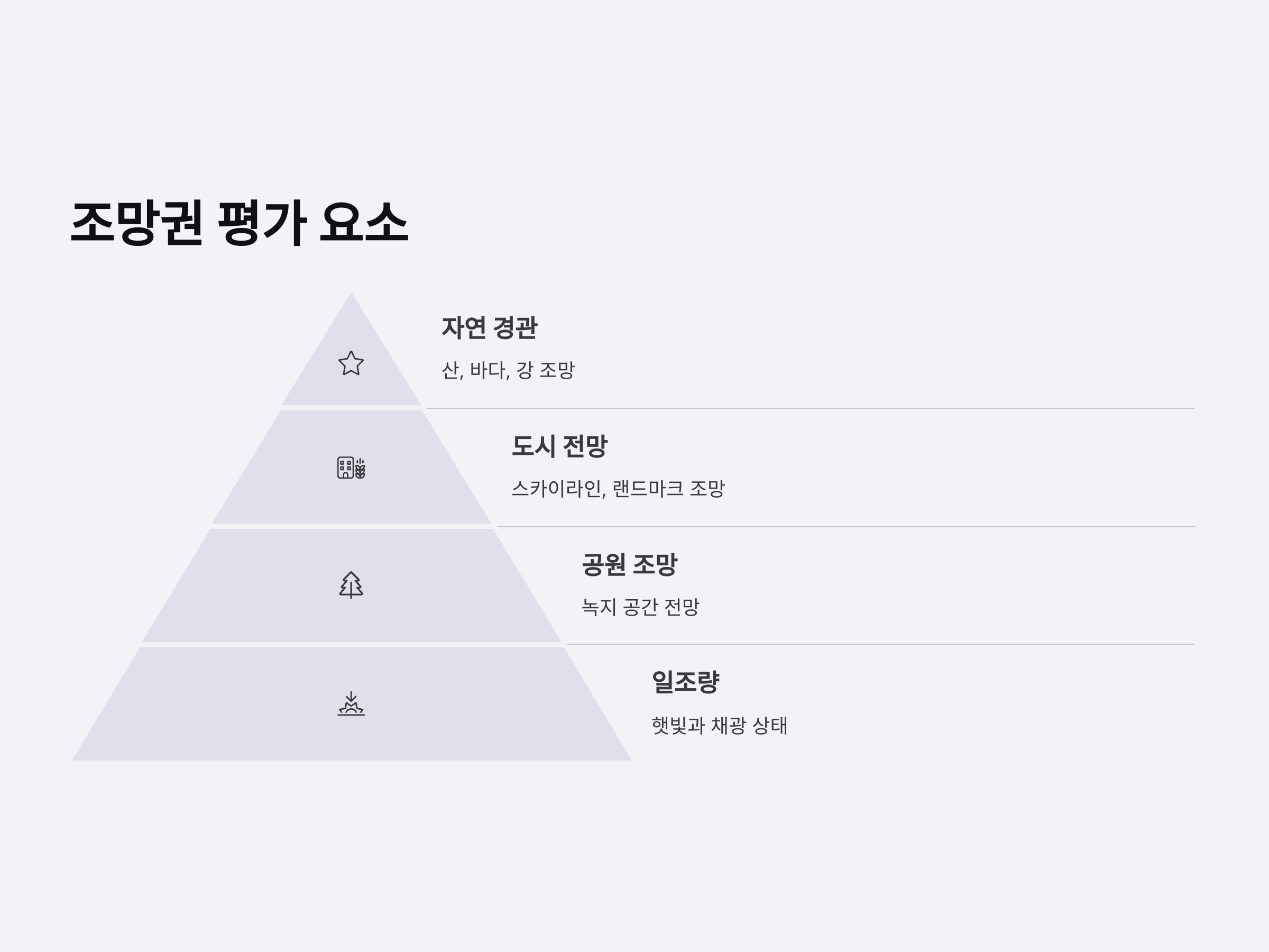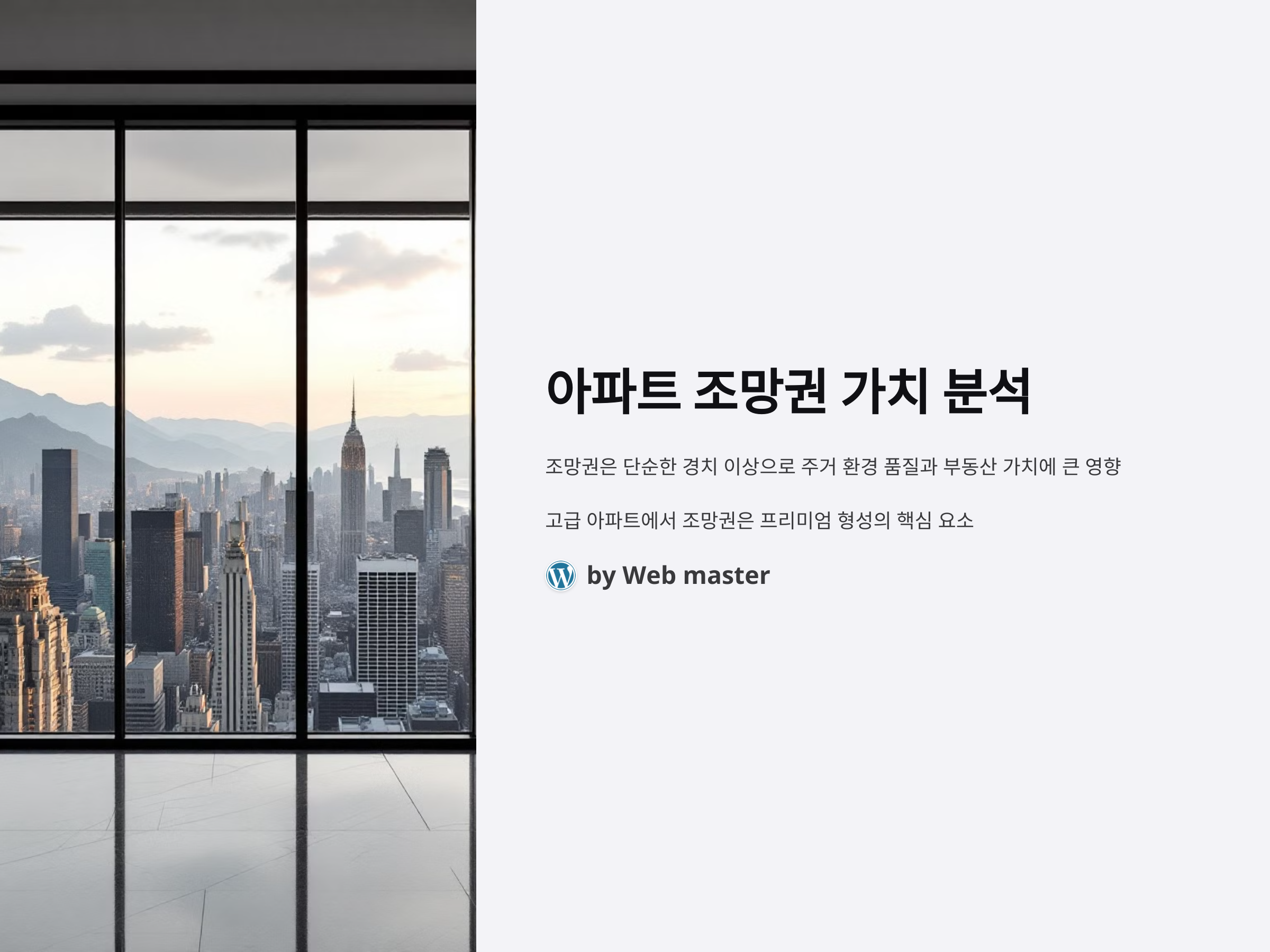 아파트를 선택할 때, 많은 사람들이 가장 먼저 고려하는 요소 중 하나는 바로 조망권입니다. 단순히 창문 너머로 보이는 경관에 그치지 않고, 조망권은 주거 환경의 품질을 결정짓는 중요한 요소로 작용합니다. 특히 고급 아파트나 고층 아파트에서는 조망권이 부동산 가치에 큰 영향을 미치기 때문에, 이를 정확하게 분석하는 것이 중요합니다.