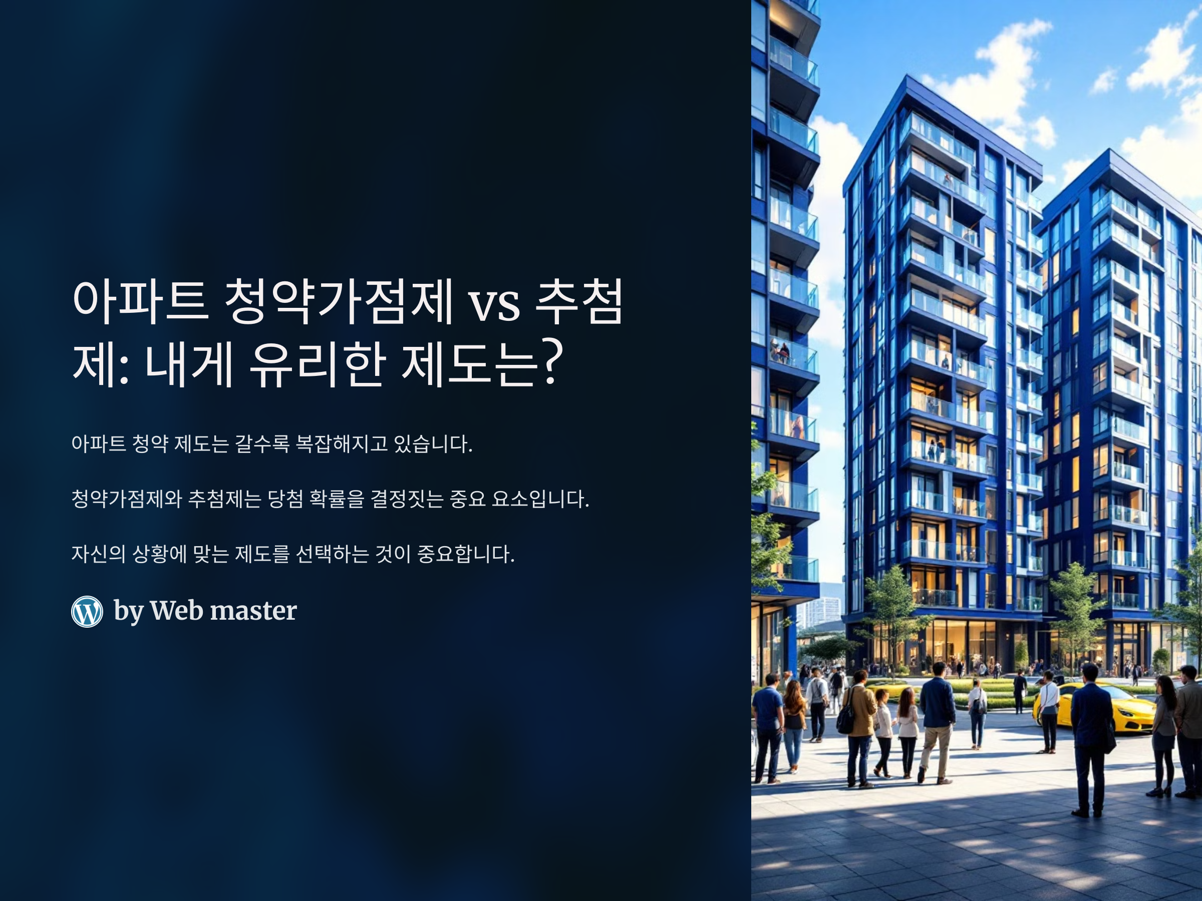 - 청약가점제: 점수에 따라 당첨자 선정, 공정하고 예측 가능한 방식