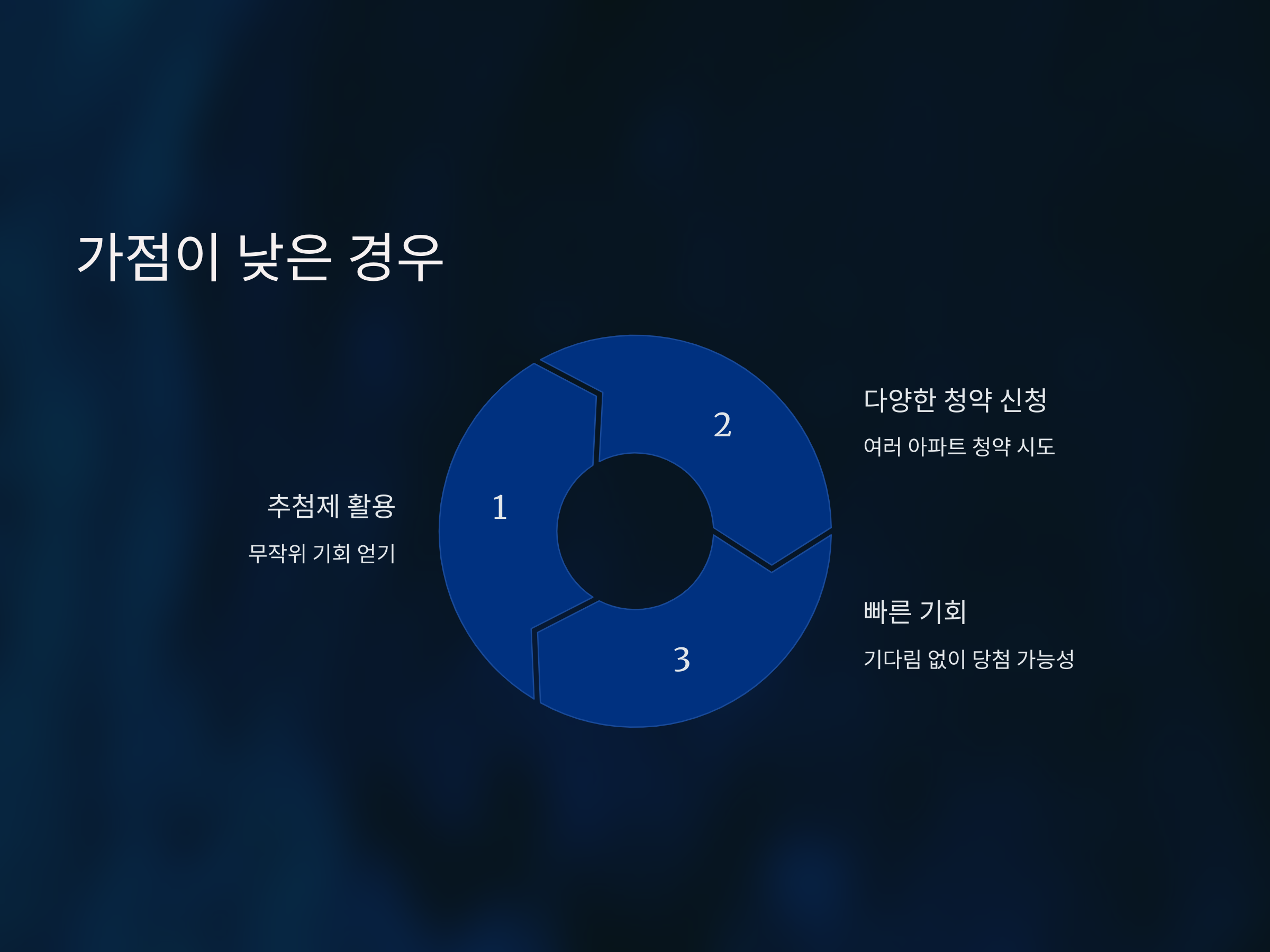 - 가점이 낮은 경우: 추첨제를 통해 빠르게 기회를 얻을 수 있으며, 기다림 없이 당첨될 수 있습니다.