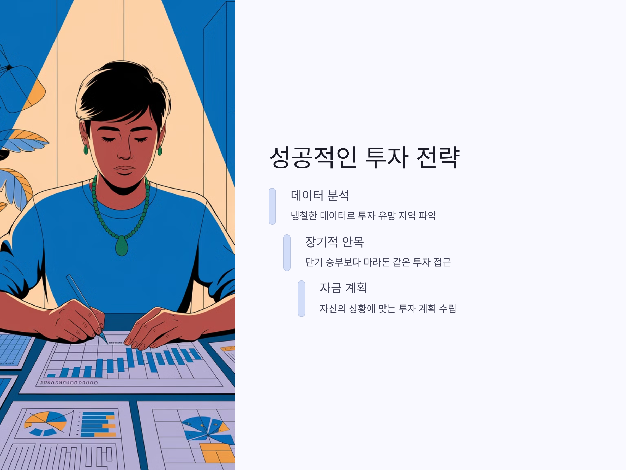 냉철한 데이터 분석을 통해 투자 유망 지역의 특징을 제대로 파악해야만 시장의 흐름을 읽고, 남들보다 한발 앞서 투자 기회를 잡을 수 있습니다. citeturn0search0