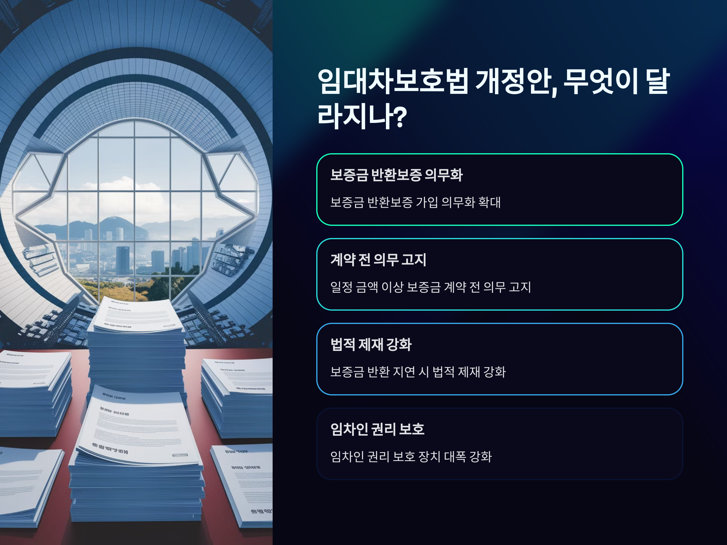 2025년부터 시행 예정인 임대차보호법 개정안에 따르면, 보증금 반환 보호 장치가 대폭 강화됩니다. 보증금 반환보증 가입 의무화가 확대되고, 일정 금액 이상의 보증금에 대해서는 계약 전 의무 고지가 이뤄질 예정입니다. 또한, 보증금 반환 지연에 따른 법적 제재도 강화되어 임차인의 권리가 보다 강력하게 보호받을 수 있습니다. 이에 따라 계약 체결 시부터 임대인의 재정 건전성, 보증보험 여부 등을 더욱 꼼꼼히 확인하는 것이 필요해집니다.