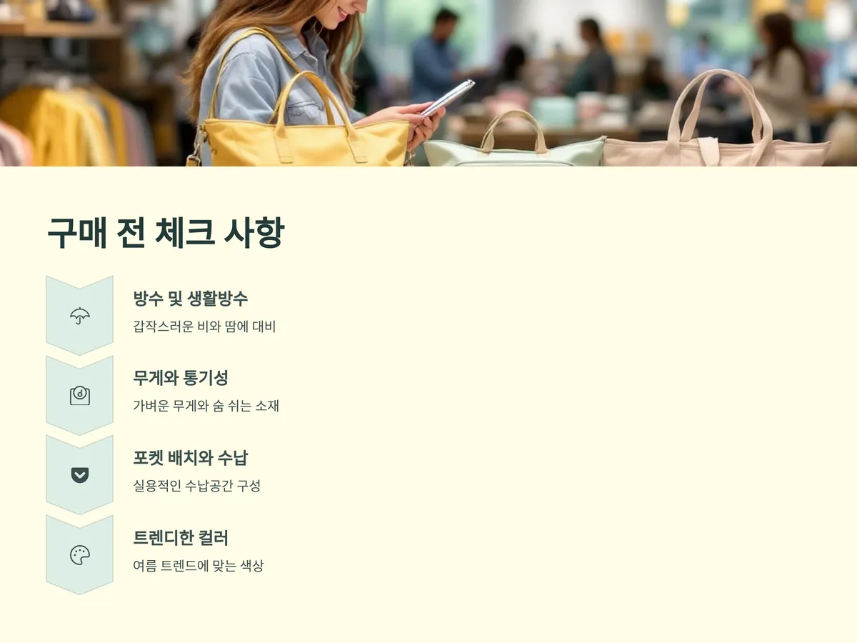 여름 가방 구매 전 꼭 체크해야 할 기능은 생각보다 많습니다. 아래 항목을 기억해두면 어떤 브랜드를 선택하더라도 실패하지 않습니다.