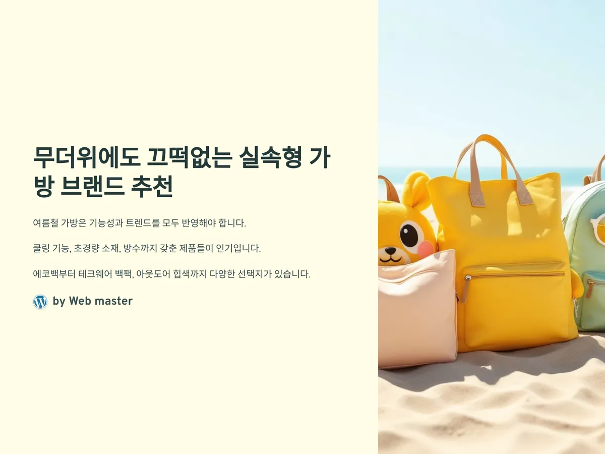 가방은 단순히 수납을 위한 도구를 넘어 하나의 패션 아이템입니다. 여름철에는 시원한 컬러감과 과하지 않은 사이즈가 핵심입니다. 특히 통근이나 등교를 위한 가방은 격식과 실용성을 모두 만족시켜야 하기 때문에 몇 가지 팁을 알려드릴게요.
