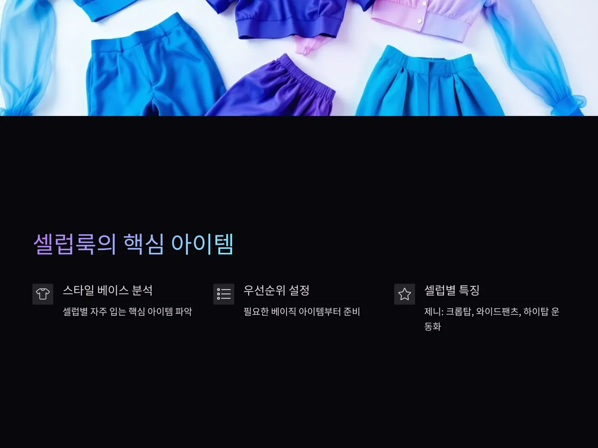 예산을 짤 때는 이러한 핵심 아이템을 중심으로 우선순위를 설정하는 것이 중요합니다. 필요 없는 유행템까지 모두 사려다 보면 예산은 금세 초과되고, 결국 아무것도 입지 못하게 될 수 있어요. 각 셀럽별로 자주 입는 ‘스타일 베이스’를 분석하고 그에 맞는 베이직한 옷부터 준비해보세요.
