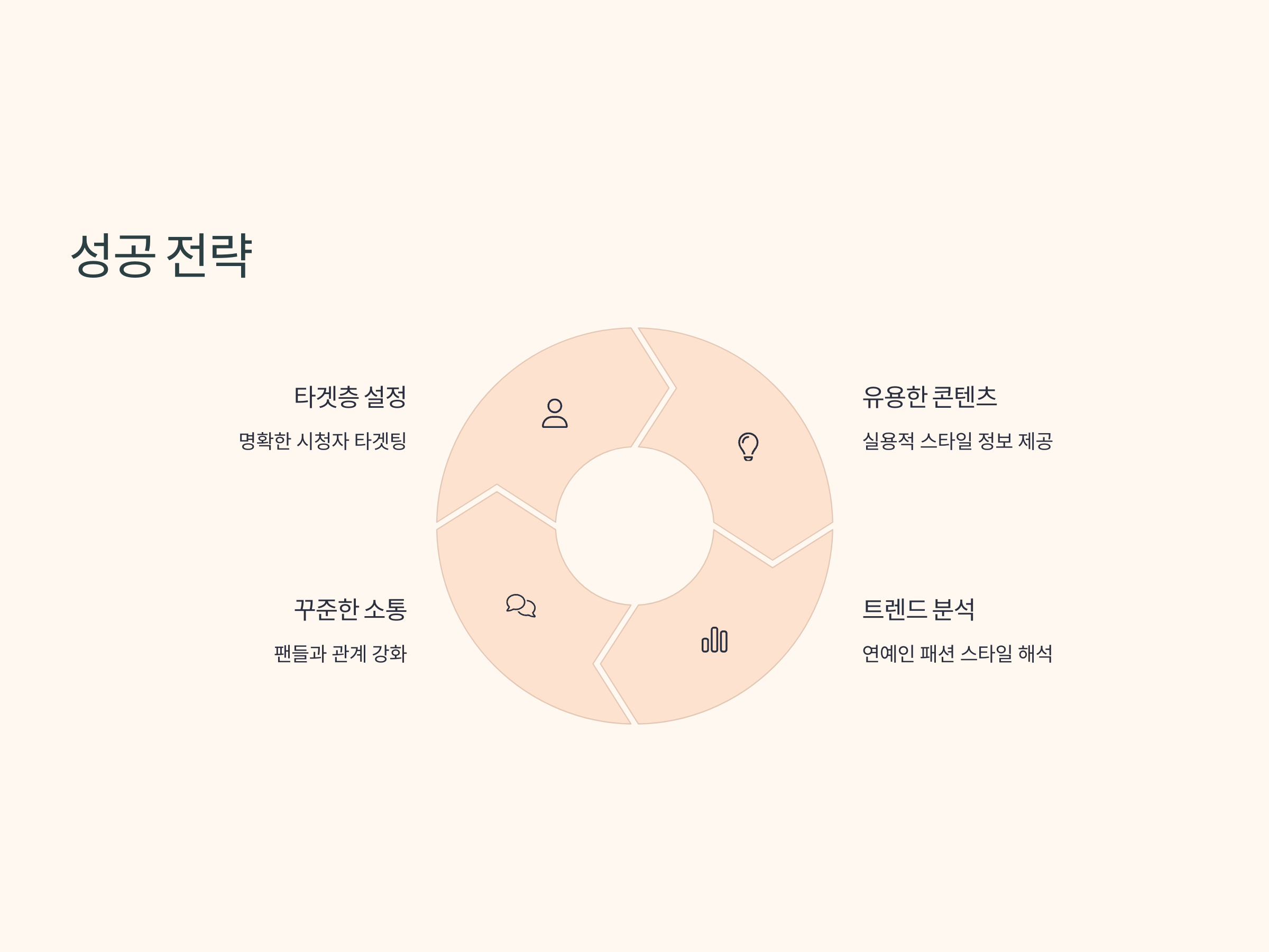 연예인 패션 유튜브 채널을 성공적으로 운영하기 위해서는 몇 가지 중요한 전략을 고려해야 합니다. 첫 번째는 타겟층을 정확히 설정하는 것입니다. 예를 들어, K-pop 팬들을 대상으로 하는 채널이라면 그들이 선호하는 스타일을 반영하고, 글로벌 팬들이 쉽게 이해할 수 있도록 다양한 언어를 지원하는 것도 좋은 전략입니다.