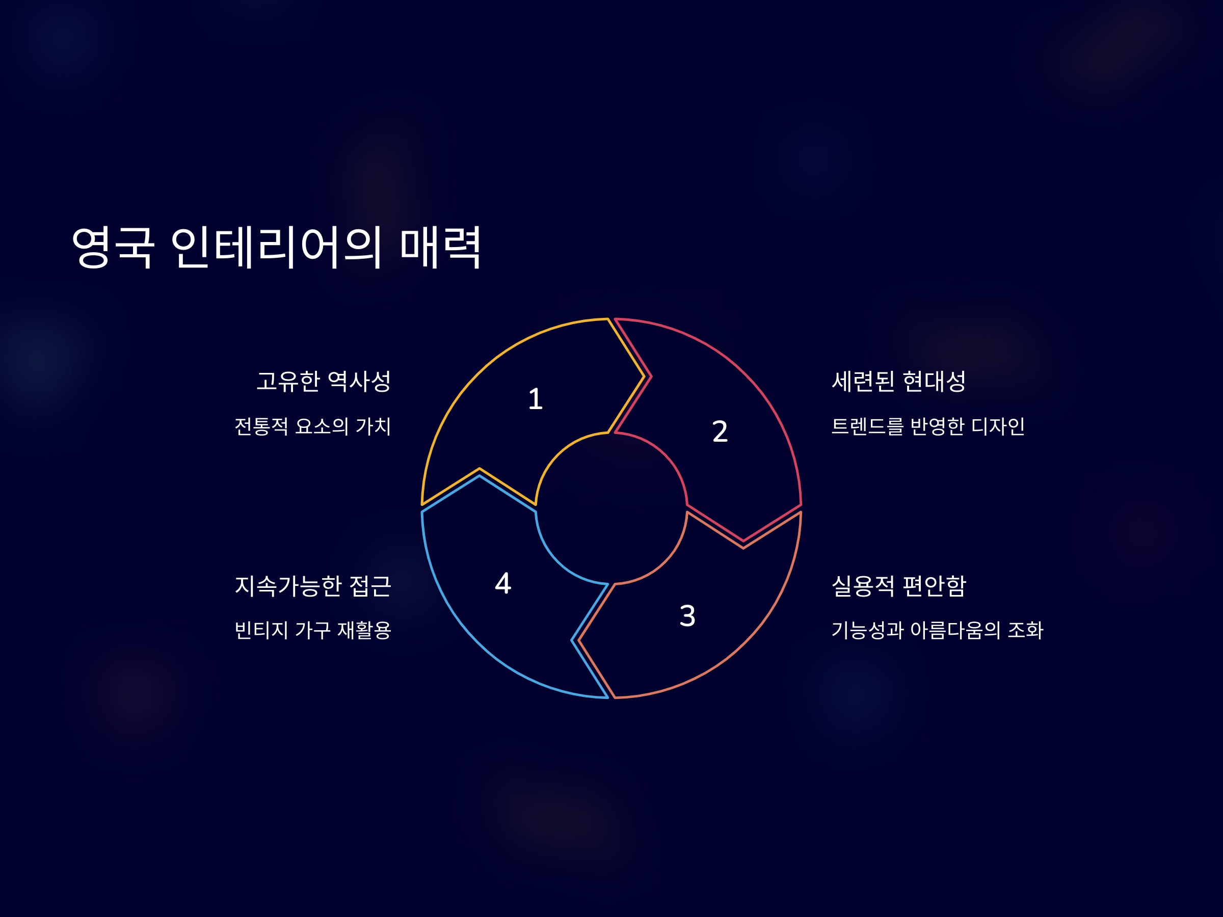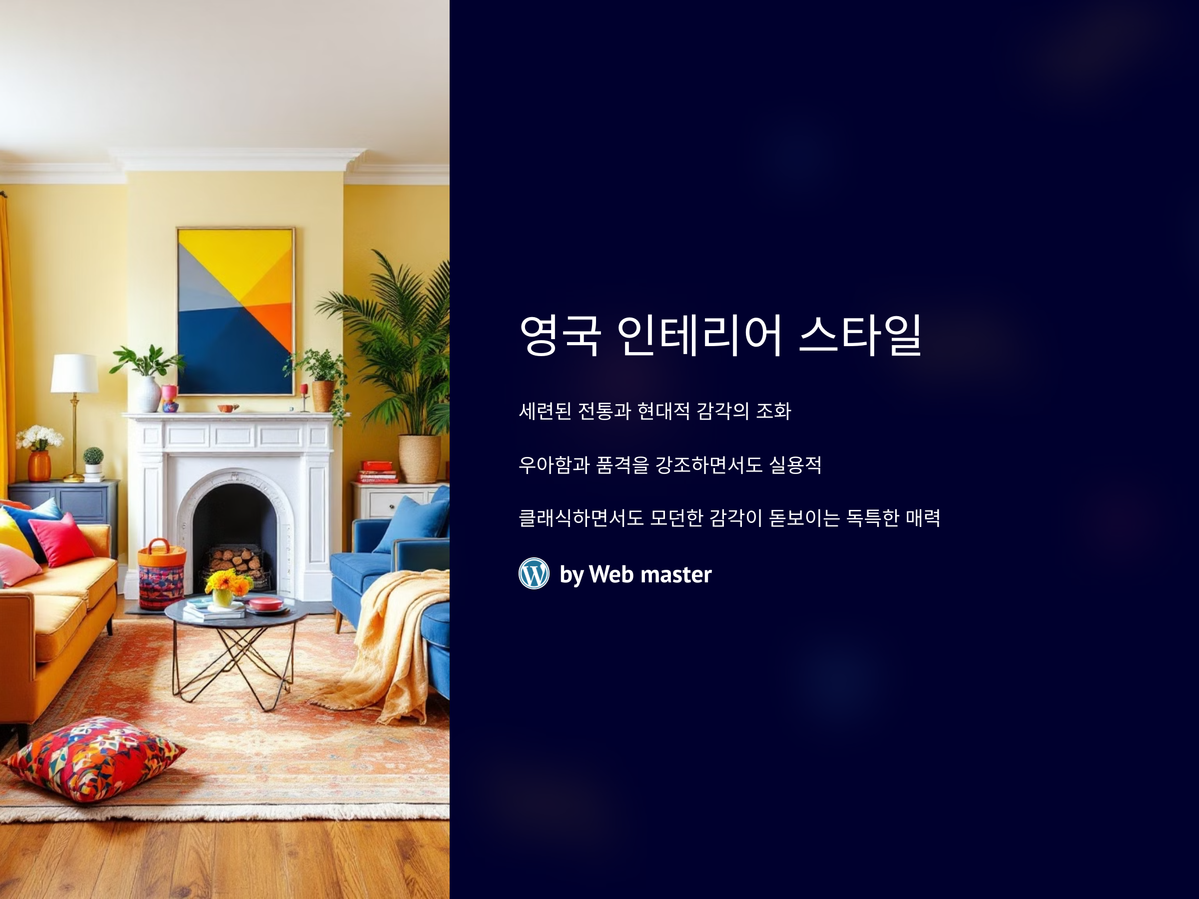 영국식 인테리어는 전통적인 요소와 현대적인 요소의 완벽한 조화를 보여줍니다. 전통적인 영국식 가구와 벽난로, 오리지널 고풍스러운 장식들은 여전히 중요한 부분을 차지합니다. 하지만 최근에는 이러한 전통적인 요소들에 현대적인 터치가 더해져, 클래식하면서도 신선한 느낌을 줍니다. 예를 들어, 전통적인 벨벳 소파에 현대적인 스타일의 조명을 더하거나, 고풍스러운 벽지와 현대적인 아트워크를 결합하여 공간을 더욱 입체적이고 다채롭게 만듭니다.