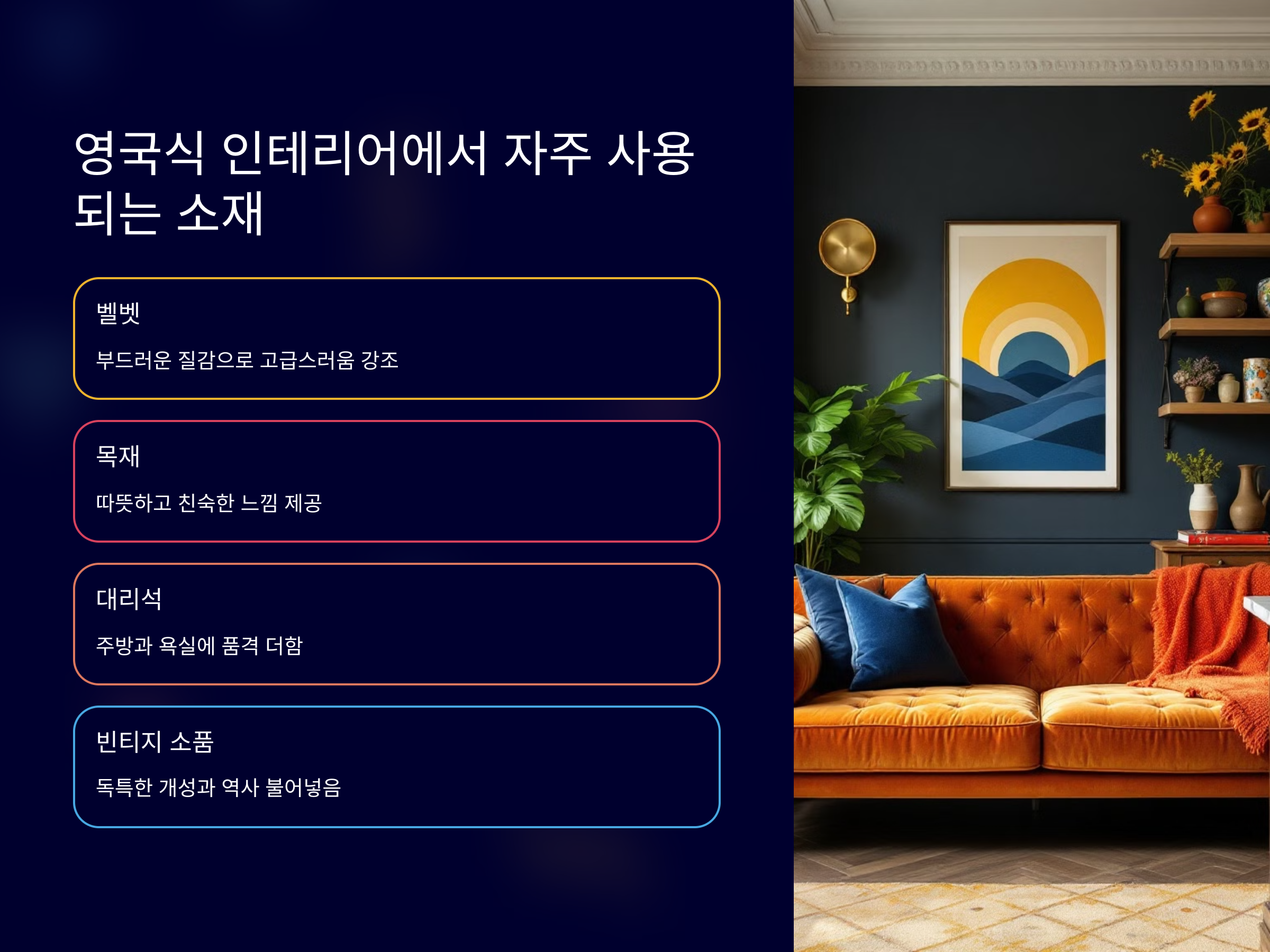 영국식 인테리어에서 자주 사용되는 소재