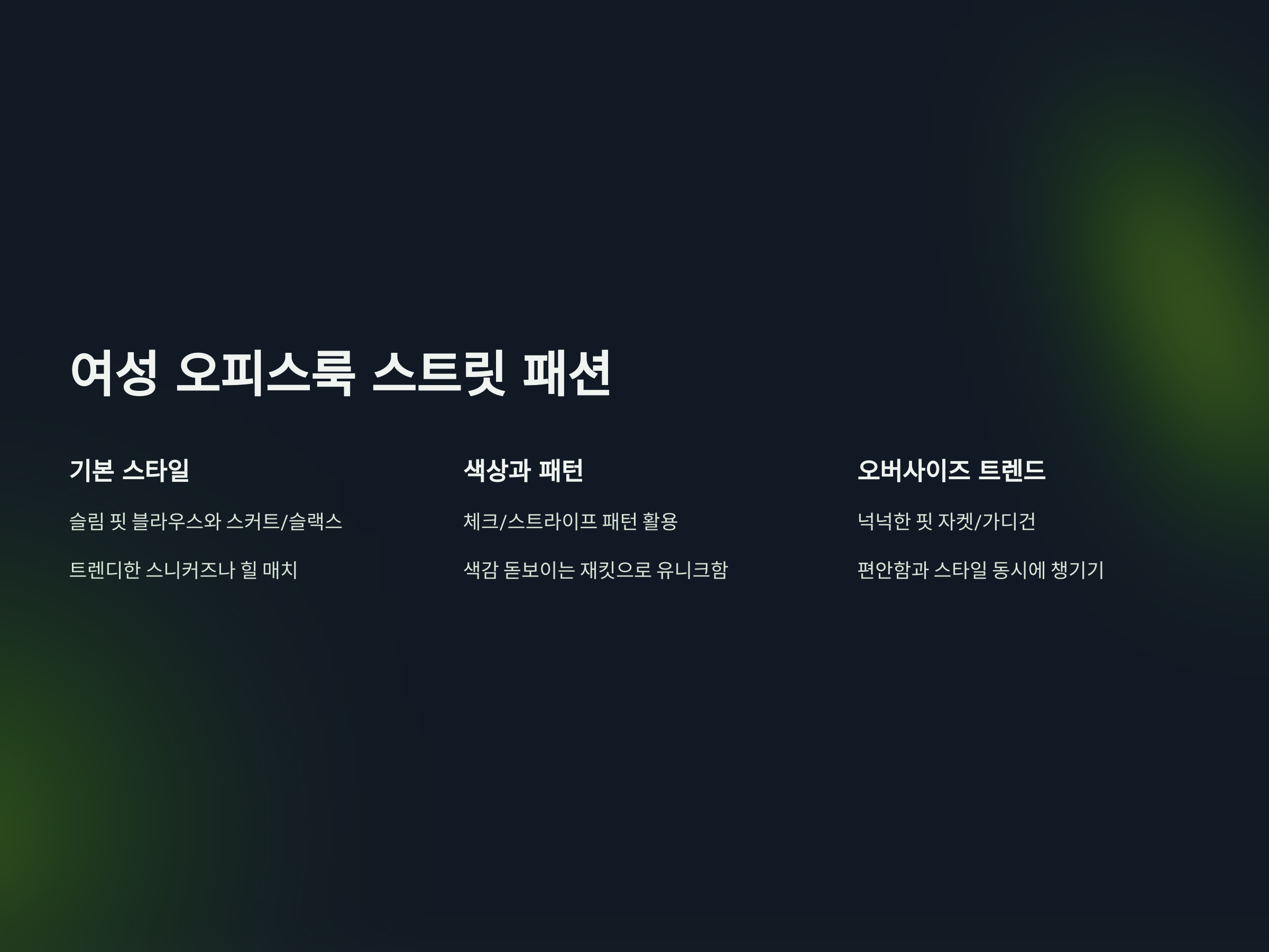 여성 오피스룩 스트릿 패션: 여성들의 트렌디한 스타일