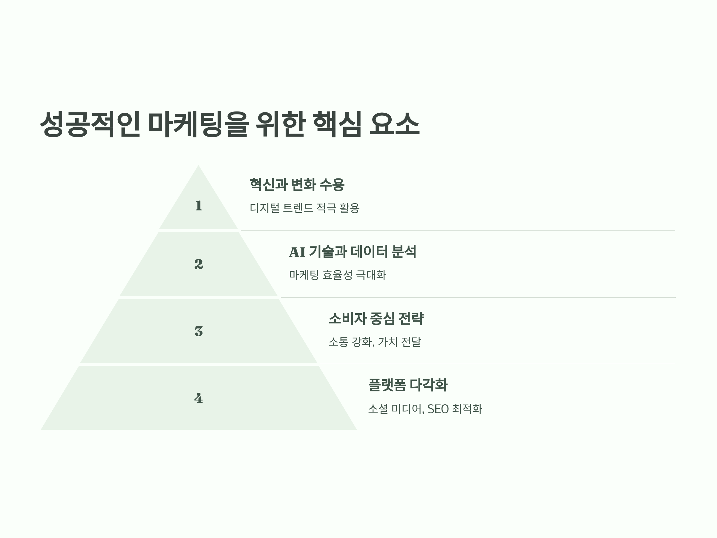 2025년에는 AI와 데이터 분석을 적극적으로 활용하는 마케팅 전략이 더욱 중요해질 것입니다. 또한, 소비자와의 소통을 강화하고, 브랜드의 가치를 전달하는 것이 중요한 포인트가 될 것입니다. 마케팅 전략은 점점 더 개인화되고, 소비자 중심으로 변화할 것입니다.