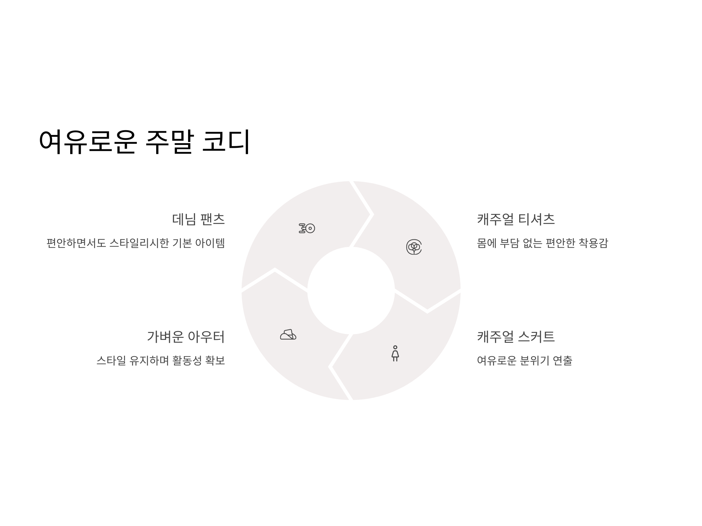 주말 패션은 스타일을 유지하면서도 몸에 부담을 주지 않는 편안한 아이템들로 선택해야 합니다. 긴 시간 아이들과 놀거나, 외출할 때도 편안하게 입을 수 있는 코디를 고려해 보세요.