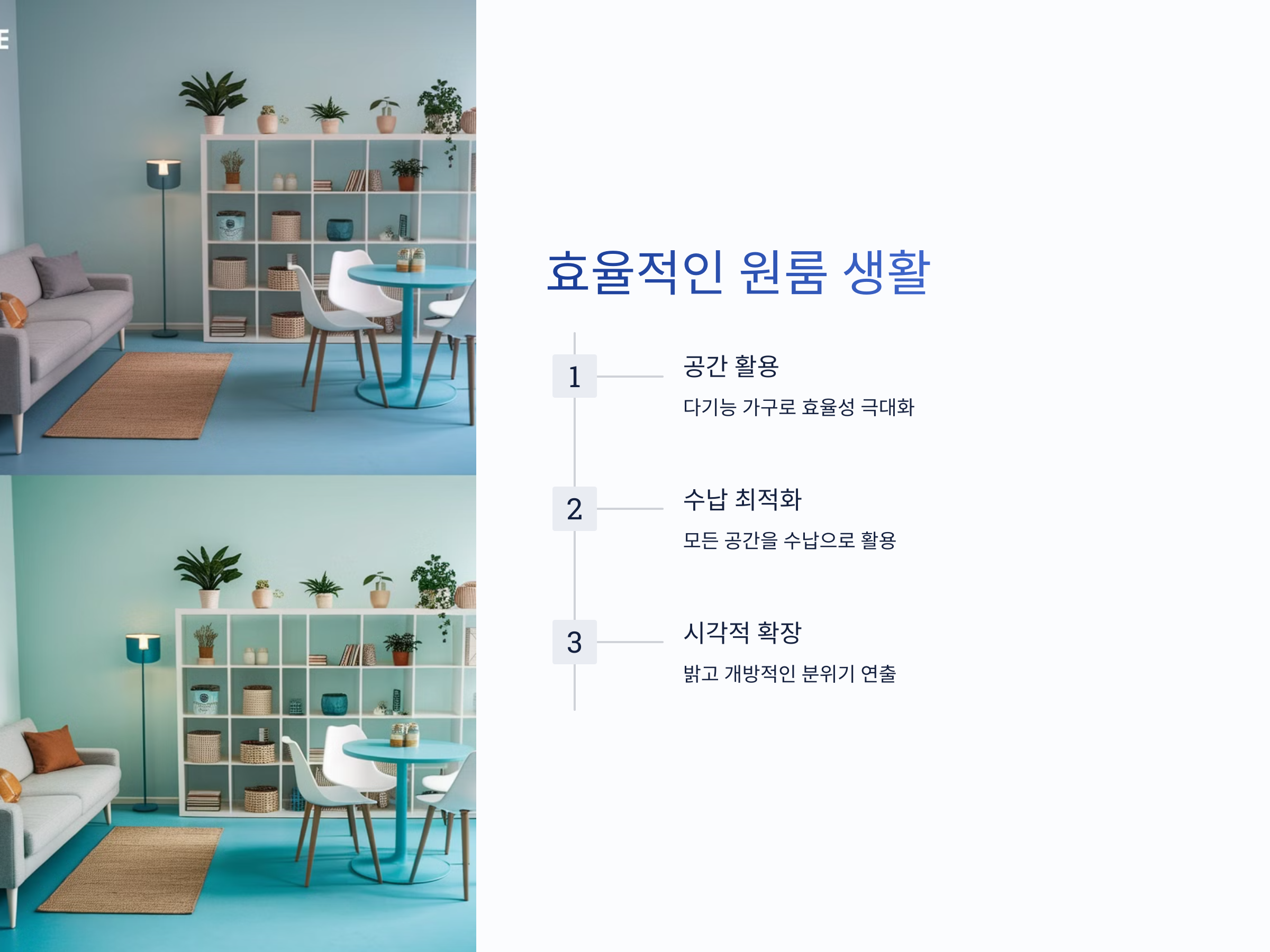 원룸에서의 생활은 좁은 공간을 어떻게 효율적으로 활용하느냐가 핵심입니다. 다기능 가구와 수납이 용이한 가구를 선택하면, 공간을 절약하면서도 생활의 편리함을 높일 수 있습니다. 위에서 추천한 소형 가구들로 원룸을 더욱 넓고 편리하게 만들어 보세요.