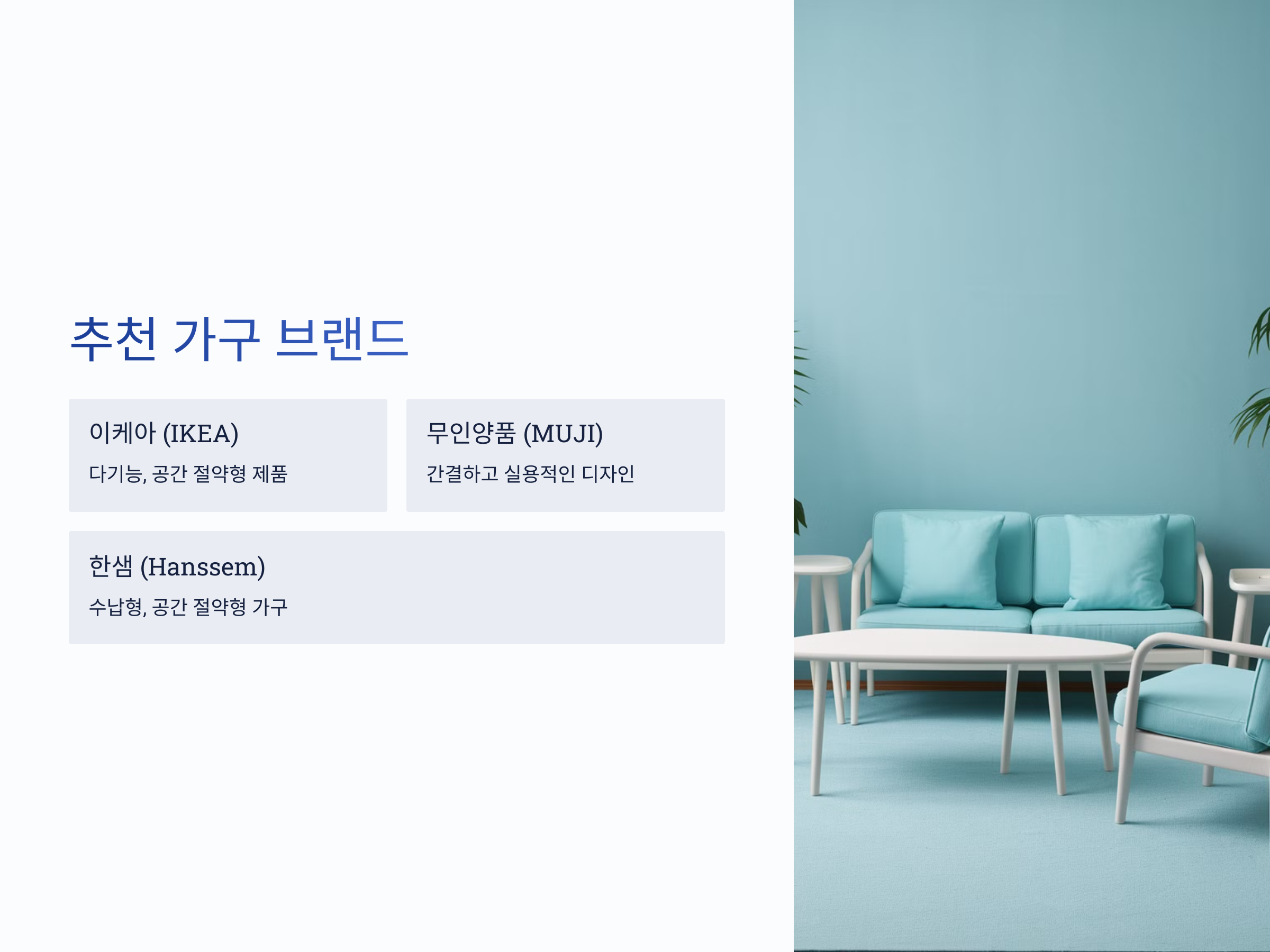 이제 구체적인 원룸 소형 가구를 추천해보겠습니다. 공간 효율성을 높이고, 디자인도 우수한 브랜드와 제품들을 소개합니다.