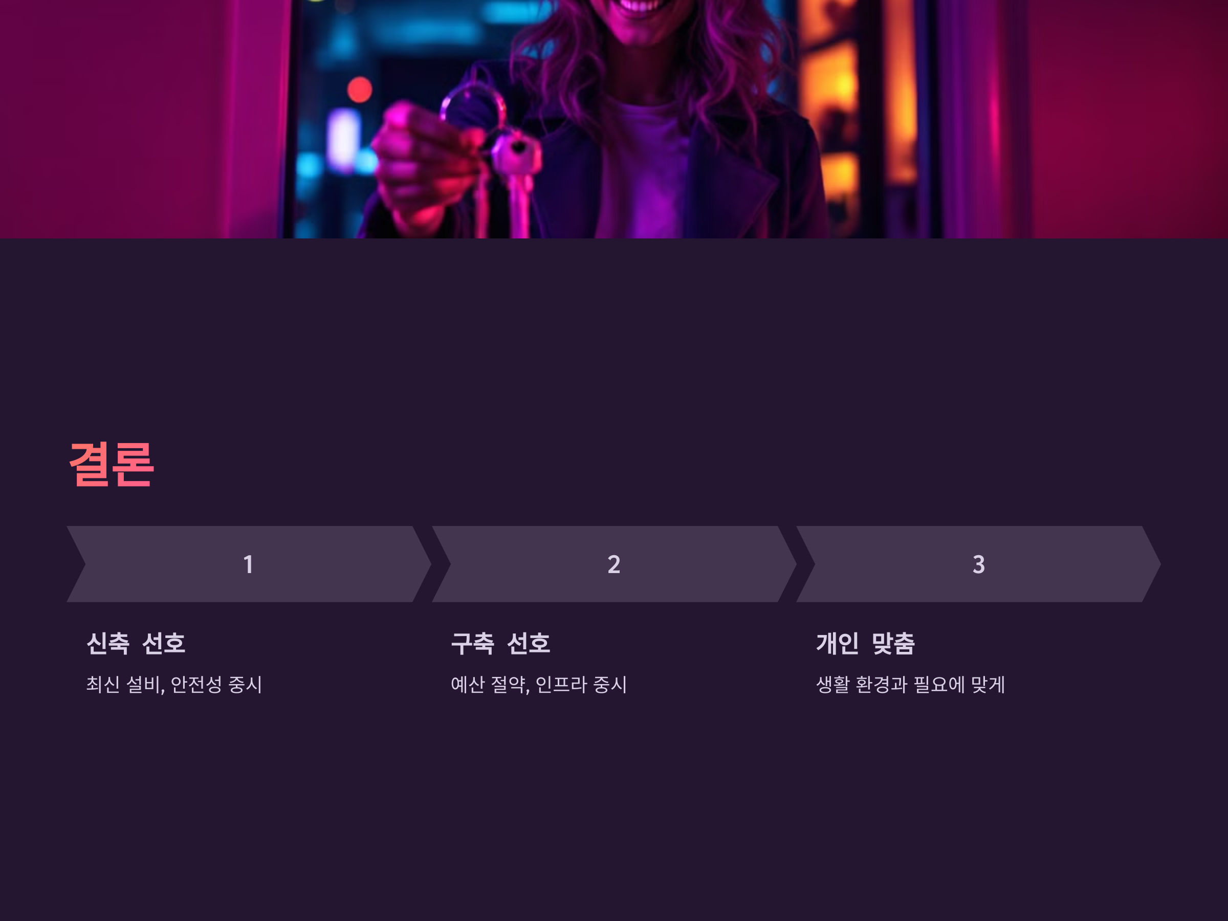 결국 원룸 신축과 구축을 선택하는 것은 개인의 생활 방식과 예산, 그리고 우선순위에 따라 달라집니다. 최신 설비와 높은 안전성을 우선시하는 사람이라면 신축 원룸이 더 나은 선택일 것입니다. 반면, 예산을 절약하면서도 주변 인프라가 잘 갖춰진 곳을 원하거나, 리모델링을 통해 나만의 공간을 꾸미고 싶은 사람이라면 구축 원룸이 적합할 수 있습니다.