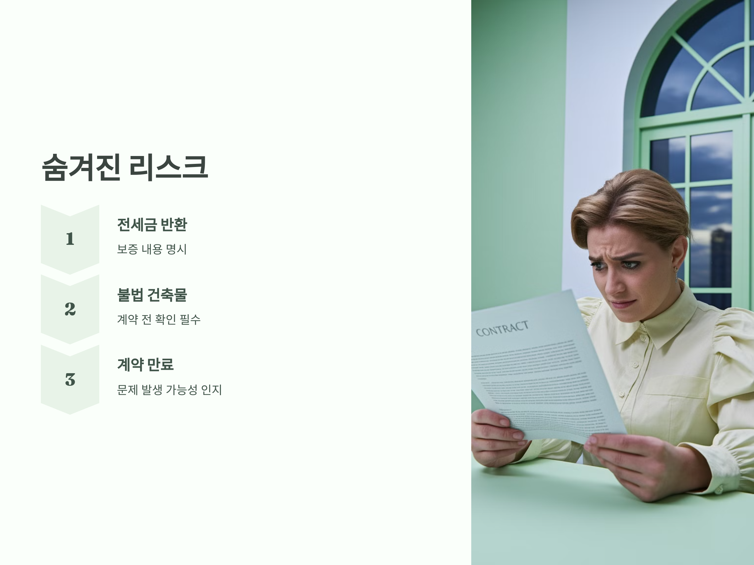 원룸 전세는 많은 장점이 있지만, 그만큼 숨겨진 리스크도 존재합니다. 전세금을 돌려받지 못하거나, 계약 만료 후 문제가 생기는 경우도 있을 수 있기 때문에 주의가 필요합니다.