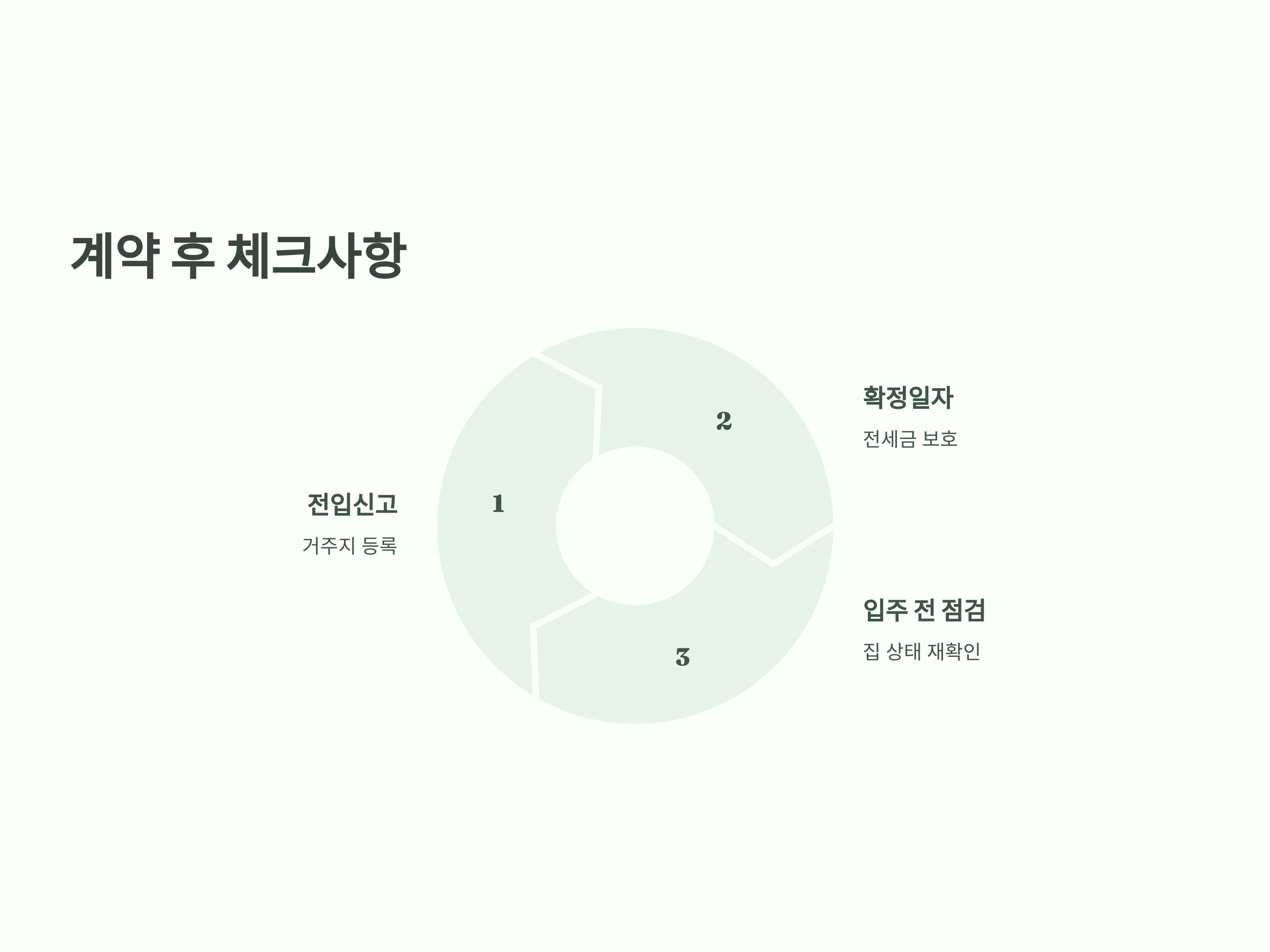 전세 계약 후에도 몇 가지 사항을 체크해야 합니다. 입주 전이나 입주 후에는 반드시 다시 한 번 집 상태를 점검하고, 계약서에 기재된 내용이 제대로 이행되고 있는지 확인해야 합니다.