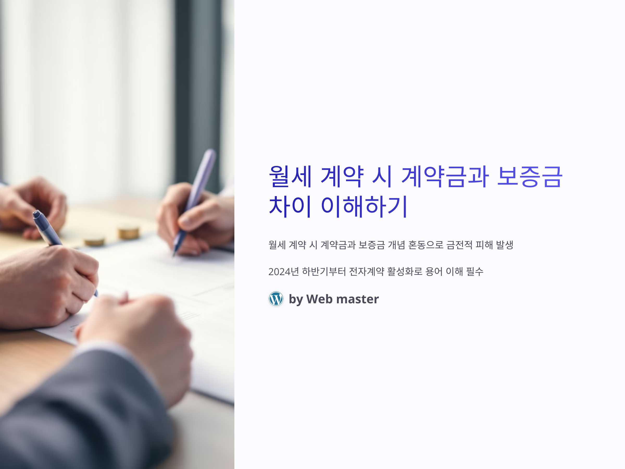 월세 계약을 앞두고 계약금과 보증금의 개념이 헷갈린 적 있으신가요? 실제로 많은 분들이 이 두 용어를 혼용해서 사용하거나, 서로의 의미를 명확히 구분하지 못해 예기치 않은 금전적 피해를 입는 경우도 적지 않습니다. 최근 부동산 시장에서 월세 수요가 꾸준히 늘고 있으며, 그에 따라 계약 구조와 거래 절차에 대한 이해도가 점점 더 중요해지고 있습니다. 특히 2024년 하반기부터 월세 계약 관련 전자계약 활성화 정책이 시행되면서, 계약서의 용어를 정확히 이해하는 것이 필수가 되었습니다. 이런 흐름 속에서 '계약금'과 '보증금'의 차이는 반드시 숙지해야 할 핵심 개념으로 떠오르고 있습니다. 이 글에서는 두 용어가 어떤 차이를 가지며, 각각 어떤 역할을 하는지에 대해 구체적으로 설명드리고, 실제 계약서 작성 시 주의해야 할 사항들까지 꼼꼼하게 짚어보겠습니다.
