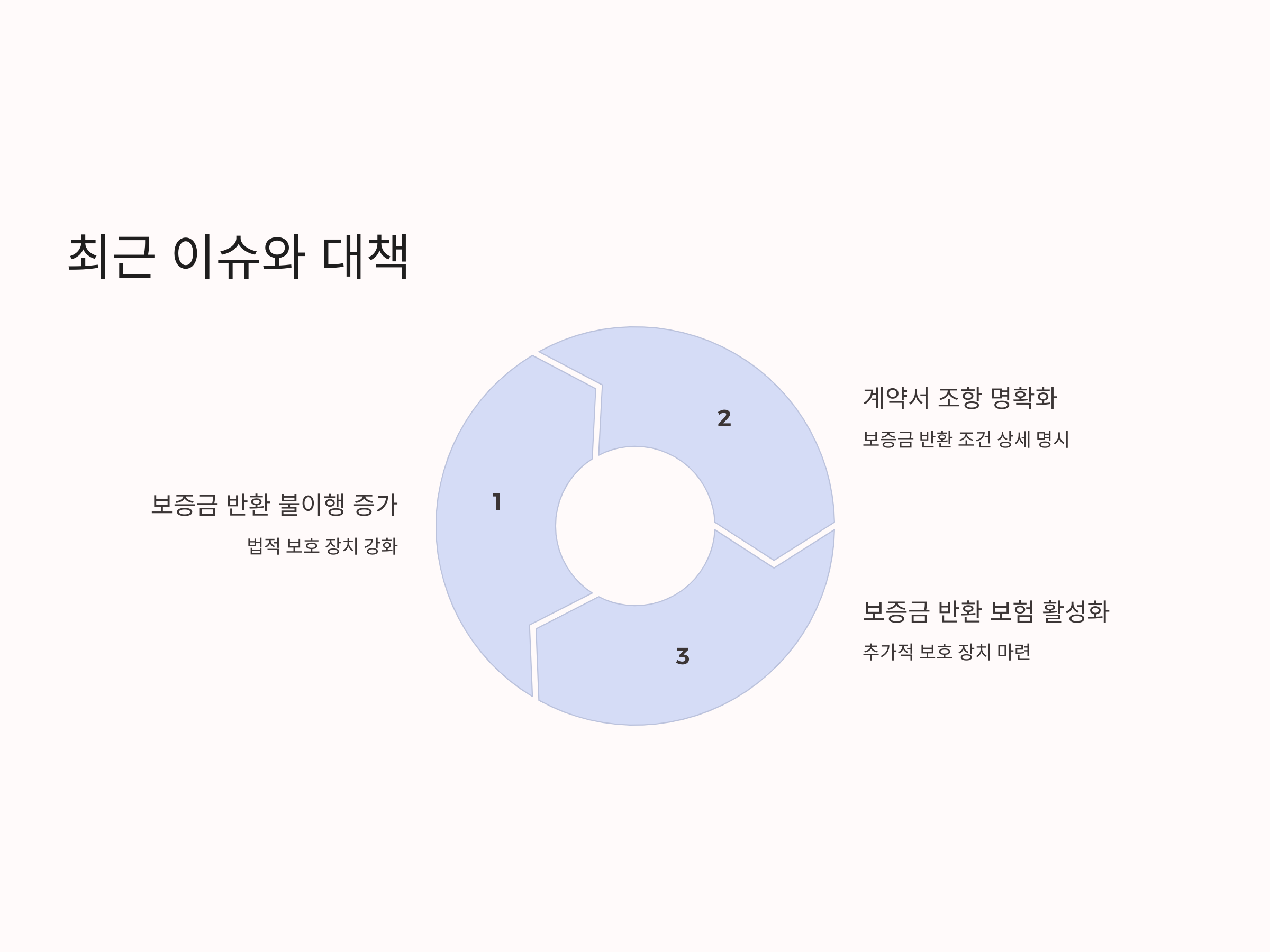 최근 보증금 보호와 관련하여 다양한 이슈들이 발생하고 있습니다. 특히, 월세 계약 시 보증금을 반환하지 않거나, 집주인이 계약을 중도에 해지하는 사례가 늘어나고 있는데요, 이에 대한 대책도 함께 살펴보겠습니다.