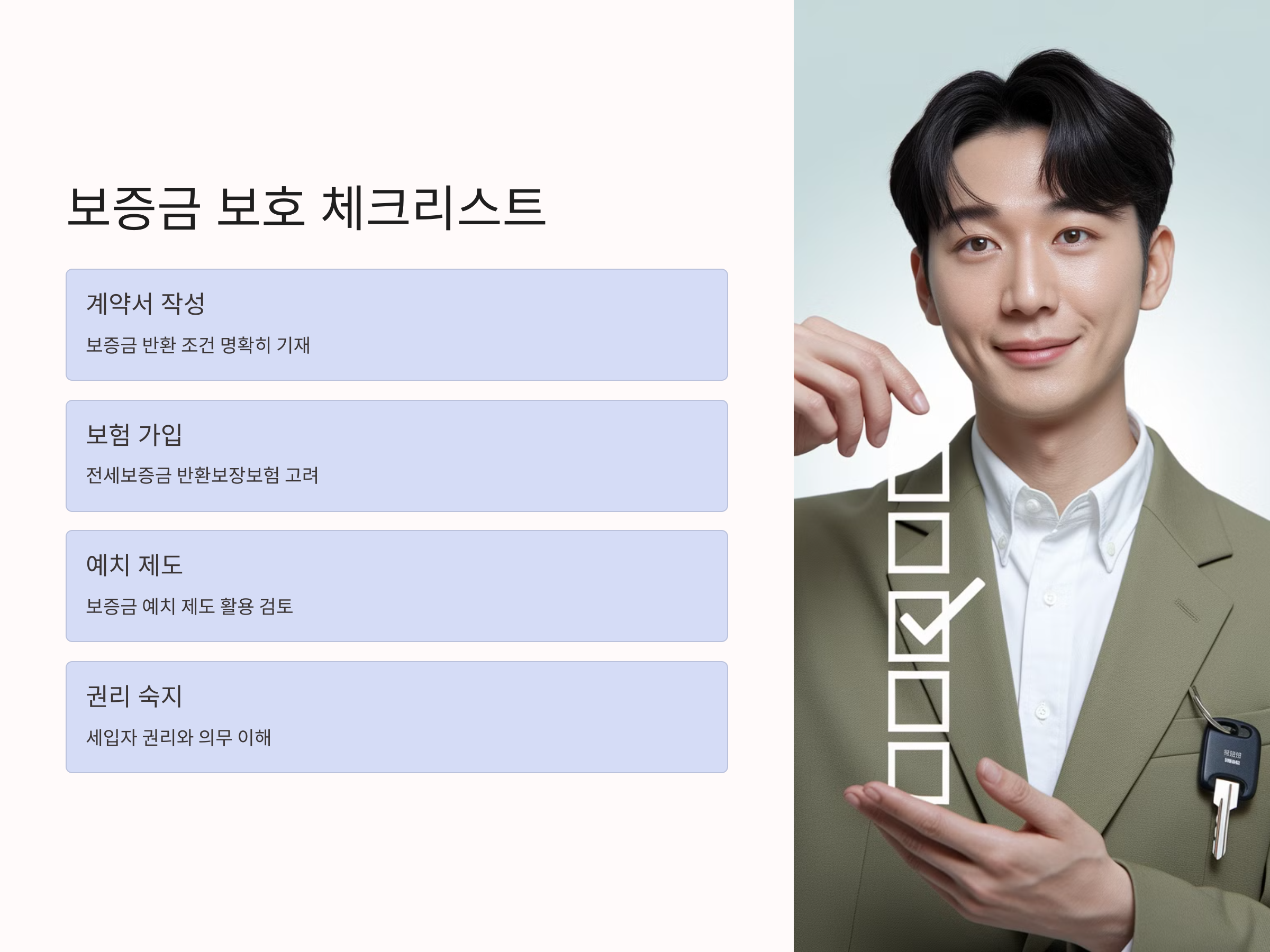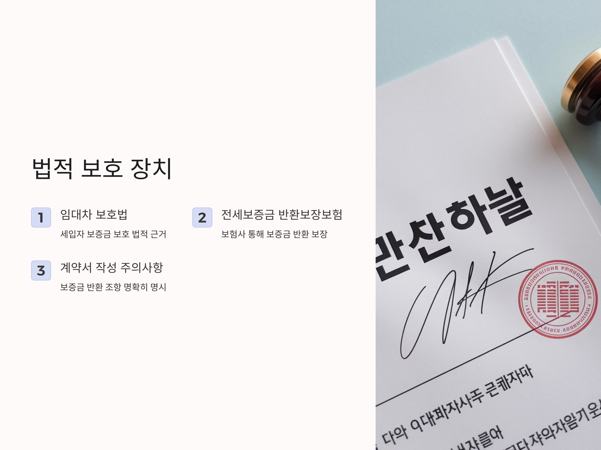먼저, 보증금 보호를 위해 어떤 법적 장치가 있는지, 그리고 세입자가 직접 할 수 있는 보호 대책은 무엇인지에 대해 자세히 설명해 드리겠습니다. 이렇게 준비하면 계약 후 발생할 수 있는 문제에 대비할 수 있고, 안정적인 거주 생활을 이어갈 수 있습니다.