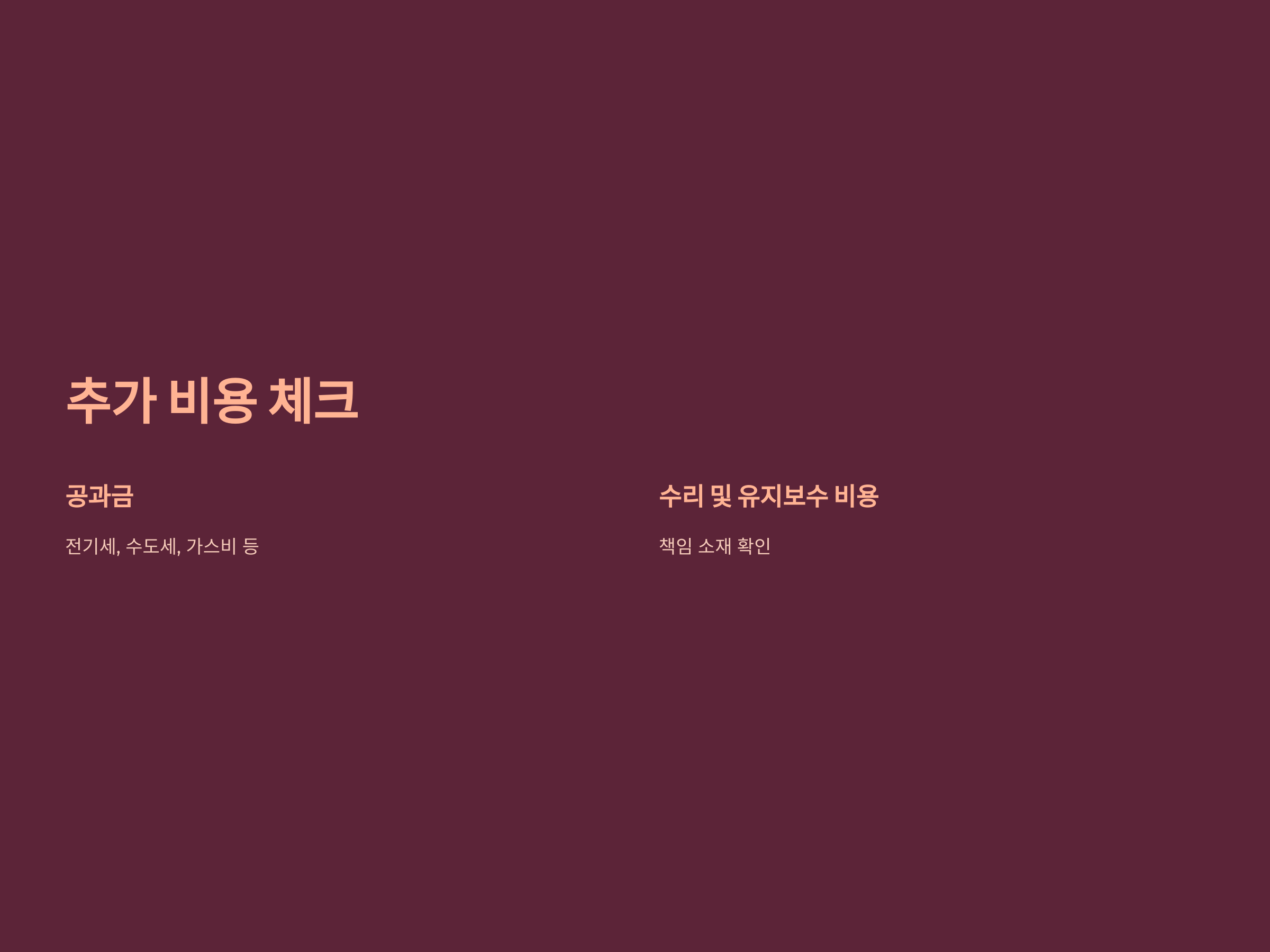 월세 계약 후 예상하지 못한 비용이 발생할 수 있으므로, 이를 사전에 체크하는 것이 중요합니다.