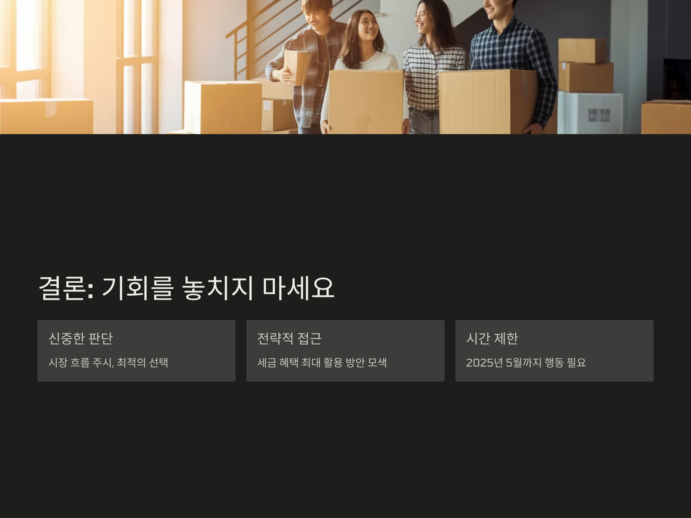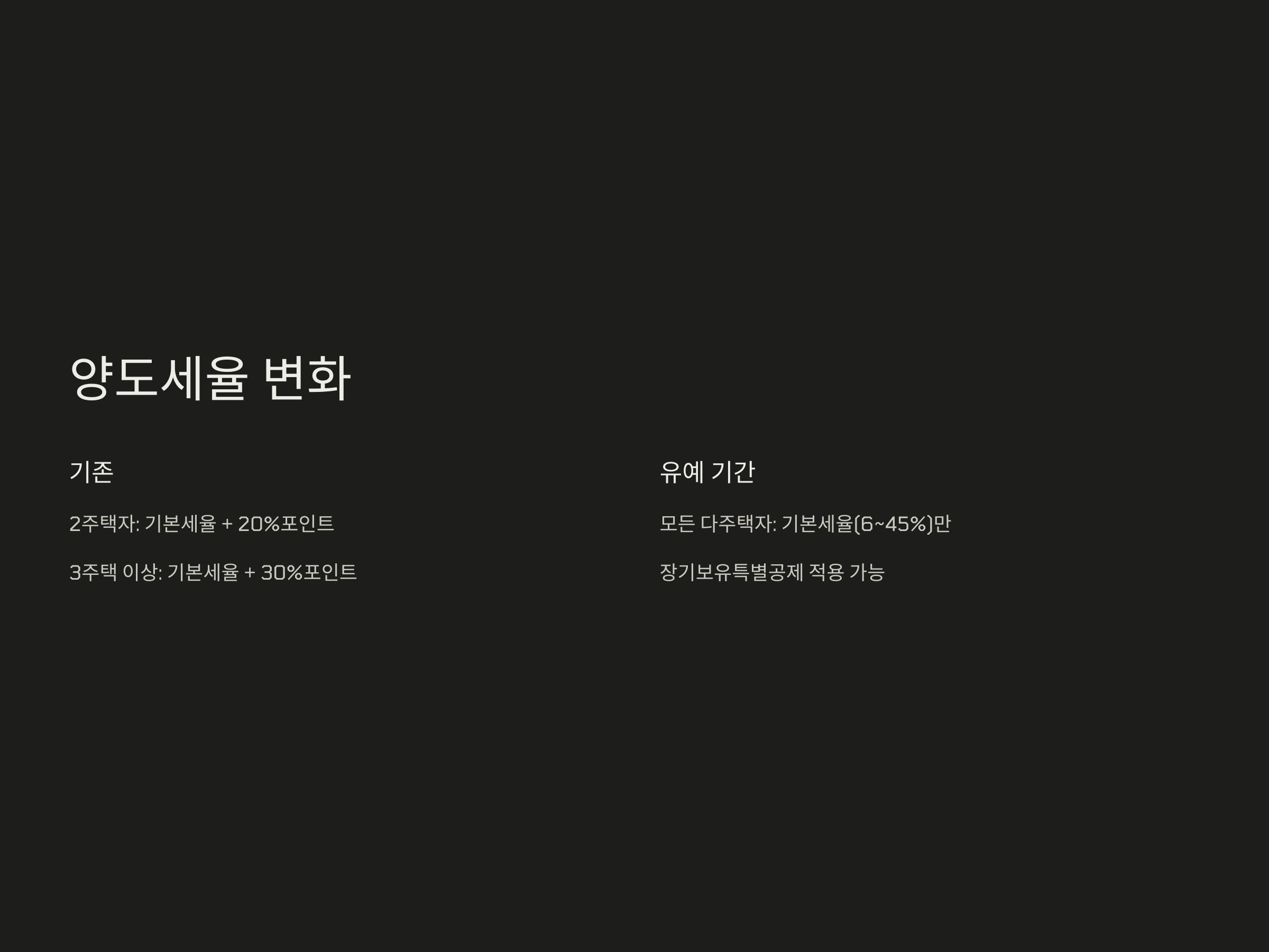 - 세금 증가 우려 (주택 수 증가에 따른 종부세 부담)