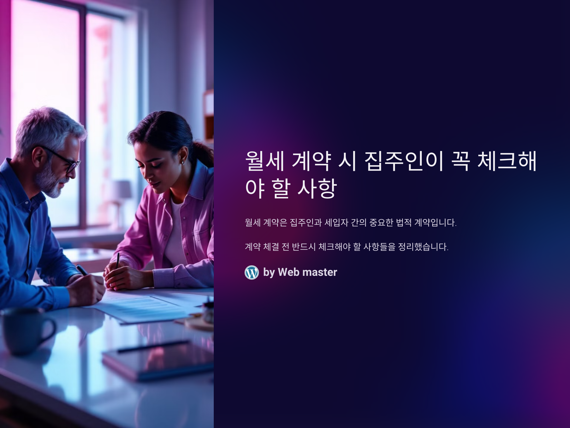 월세 계약은 집주인과 세입자 간의 중요한 법적 계약이므로, 계약 체결 전 반드시 체크해야 할 사항들이 많습니다. 이 글에서는 월세 계약을 체결할 때 집주인이 반드시 확인해야 할 필수 사항들을 정리하여, 후속 문제를 예방하고 원활한 계약 진행을 돕겠습니다.