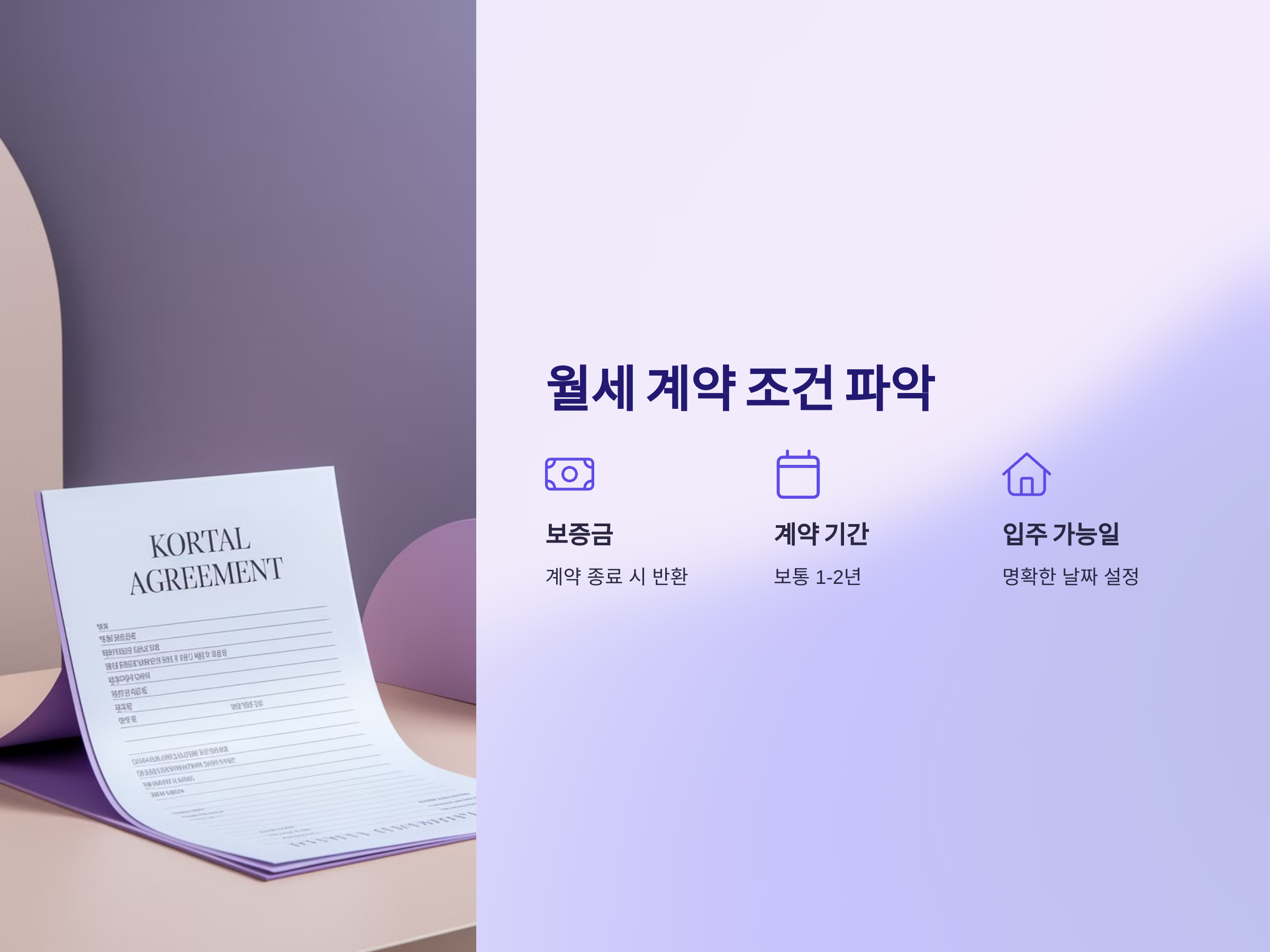 - 계약 기간: 월세 계약은 일반적으로 1년 또는 2년이 많습니다. 계약 기간과 조건을 잘 협의해야 합니다.