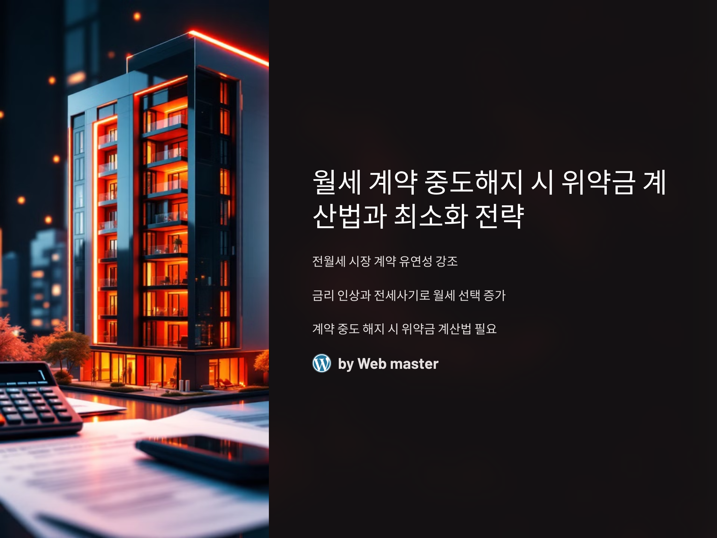 본 포스팅에서는 실제 월세 계약 해지 시 적용되는 위약금 계산 방식, 조기 해지 시 유리한 협상 포인트, 해지 통보의 시기와 방식, 그리고 세입자 보호를 위한 팁까지 모두 정리해드립니다. 월세 계약을 보다 유연하게 운영하고자 하는 분들이라면 반드시 확인해야 할 정보입니다.