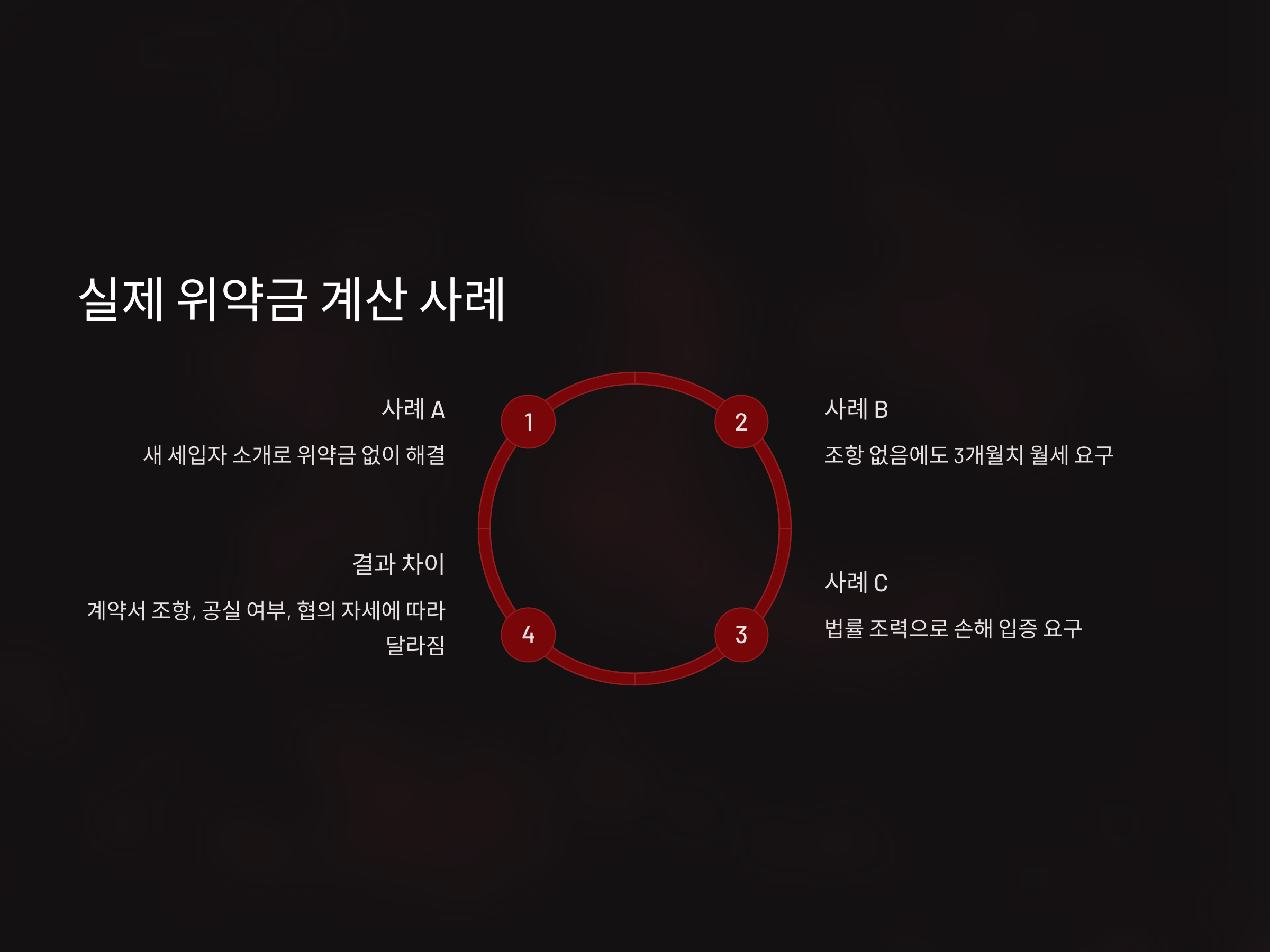 이처럼 실제 분쟁 사례를 보면, 계약서 조항의 유무와 공실 여부, 세입자의 협의 자세에 따라 위약금의 크기나 발생 여부가 달라지는 것을 알 수 있습니다.