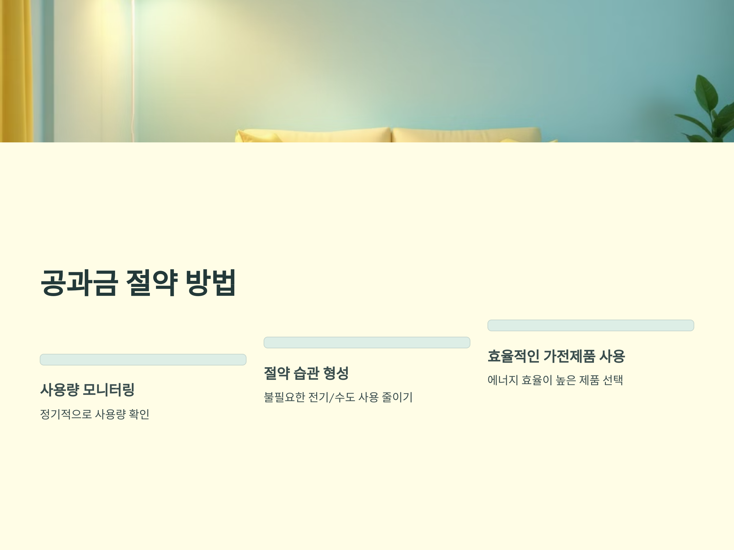 - 공과금 사용량을 줄일 수 있는 방법(예: 전기 절약, 가스 효율적인 사용 등)을 고려해보는 것이 좋습니다.