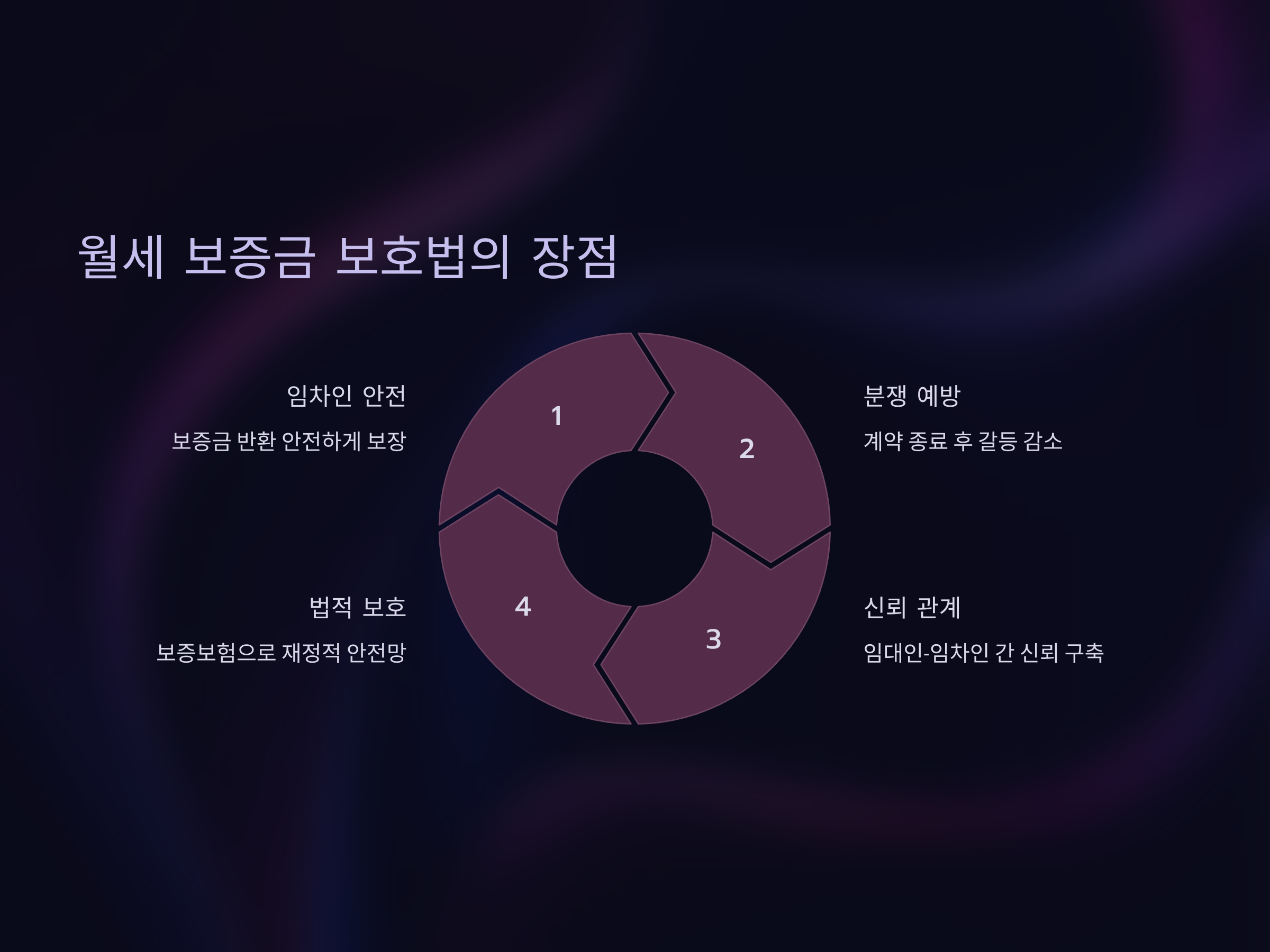 월세 보증금 보호법의 가장 큰 장점은 임차인이 보증금을 안전하게 보호받을 수 있다는 점입니다. 일반적으로 월세 계약 후 보증금 반환 문제가 발생할 수 있는데, 이 법을 통해 임차인은 불안감 없이 계약을 체결할 수 있습니다. 보증금이 반환되지 않거나, 계약 종료 후 임대인이 보증금을 지불하지 않는 경우, 보증보험을 통해 보장받을 수 있기 때문입니다.