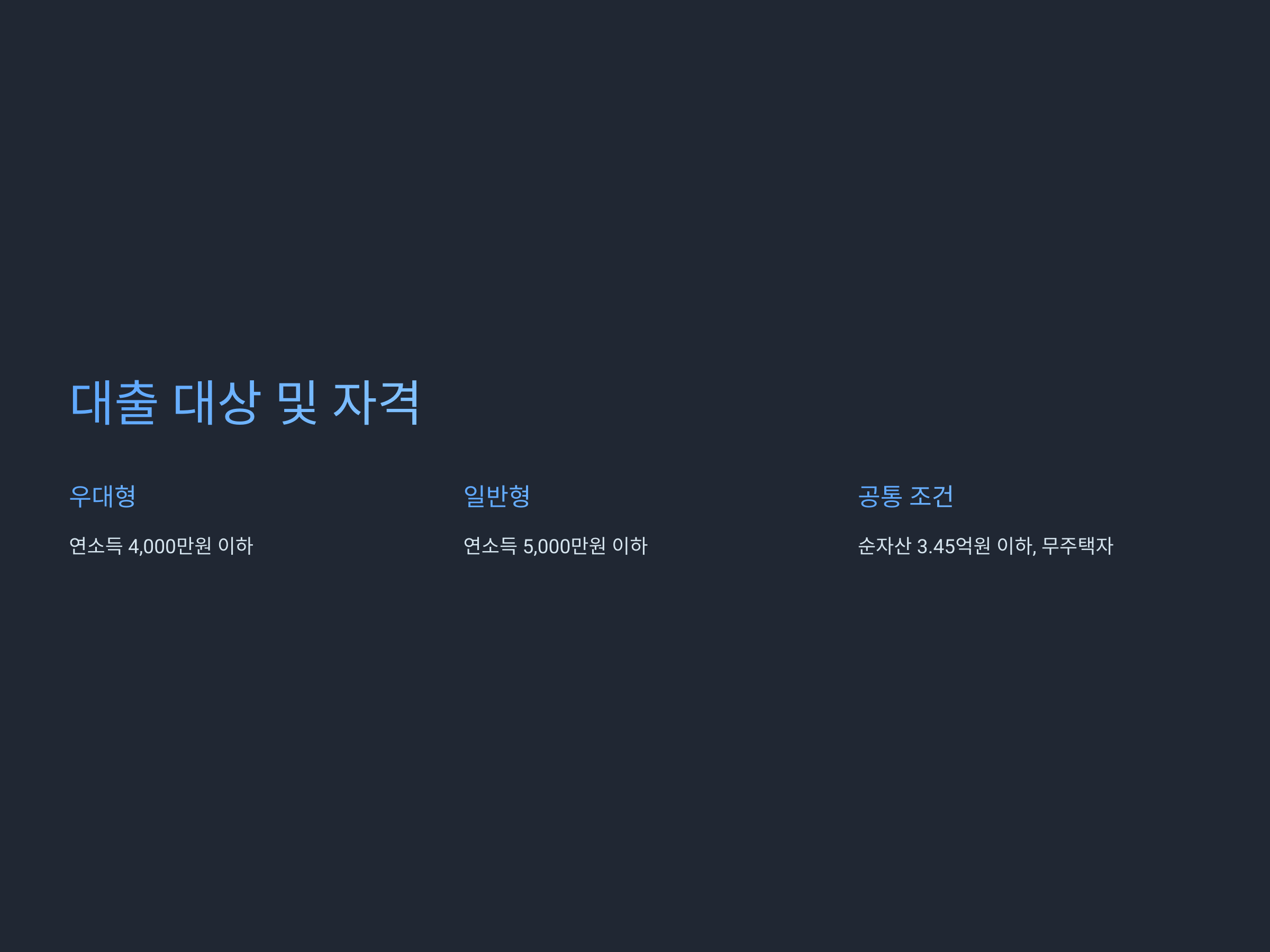 - 일반형: 부부 합산 연소득 5,000만 원 이하로 우대형에 해당하지 않는 분들.