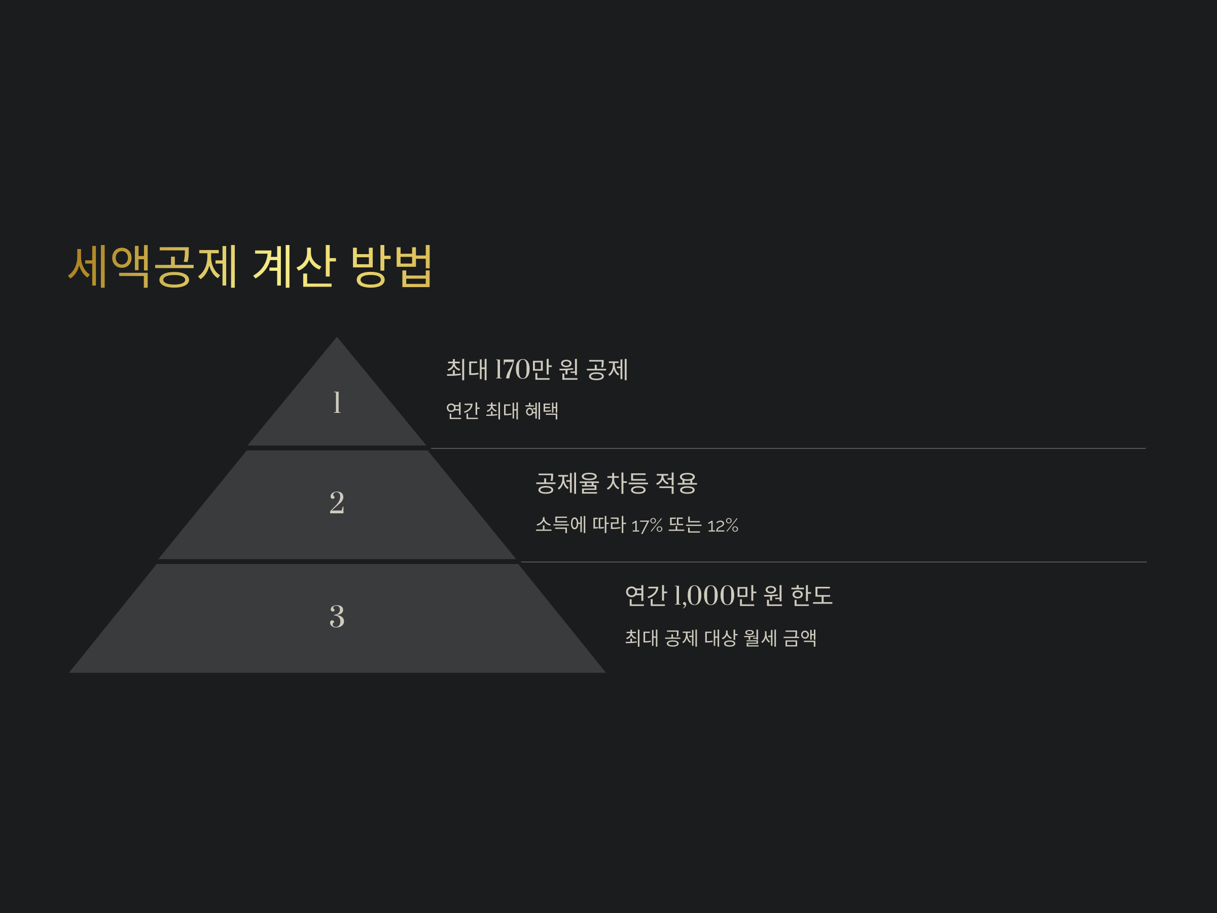 월세 세액공제는 소득에 따라 공제율이 다르게 적용됩니다: