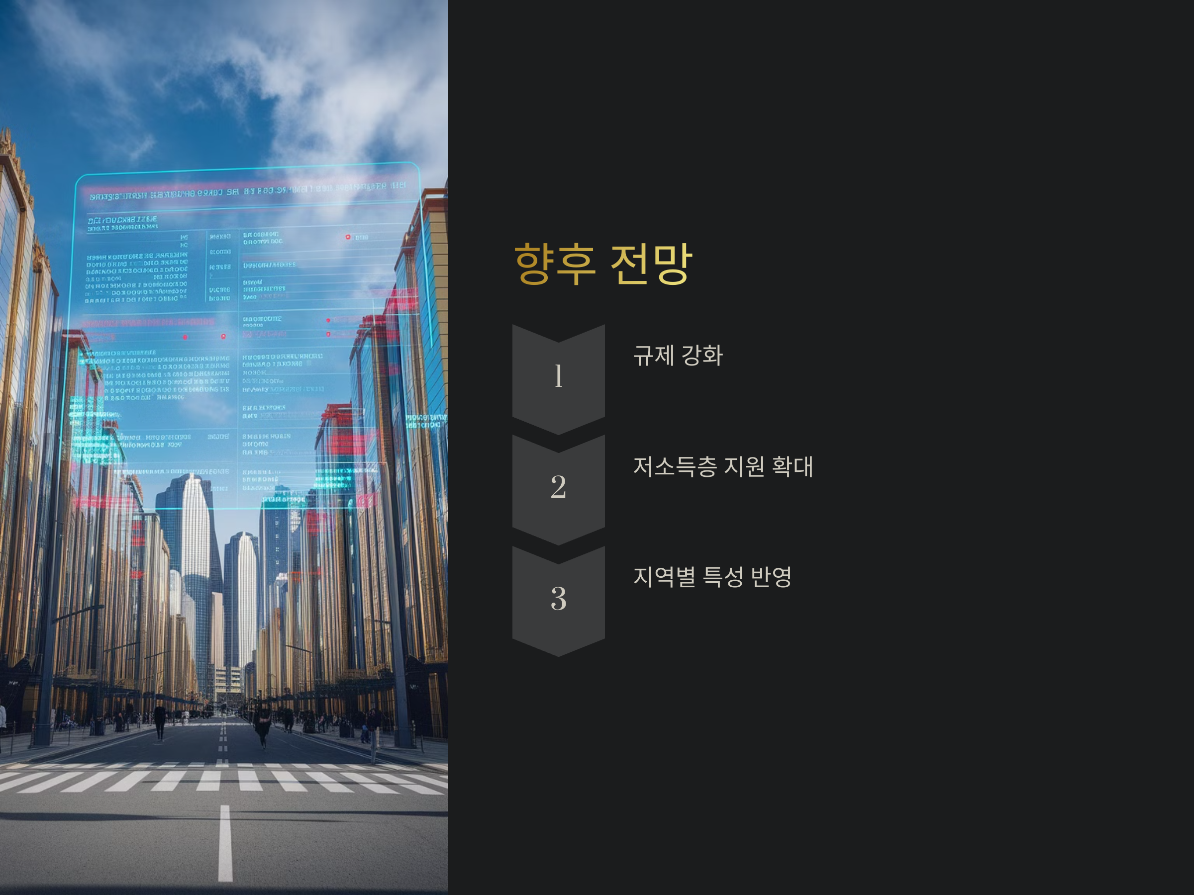 앞으로 월세 인상률 제한 규정은 더욱 강화될 가능성이 높습니다. 정부는 주택 시장의 안정성을 확보하고, 세입자의 권리를 보호하기 위해 월세 인상률 제한을 더욱 강화하려는 노력을 계속하고 있습니다. 특히, 저소득층을 위한 주거비 지원이 늘어나고, 월세 인상에 대한 규제가 더 엄격해질 것으로 예상됩니다. 다만, 이러한 규제가 임대인의 재정적 부담을 가중시킬 수 있기 때문에, 정부는 이에 대한 보완책도 함께 마련해야 할 것입니다. 또한, 지역별로 월세 인상률의 차이가 클 수 있기 때문에, 지역별 특성을 반영한 규제가 필요하다는 목소리도 커지고 있습니다.